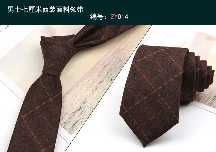 领带男Korean Version 7CM Self-Tied Neckties Classic Elegant Plaid Tie Fit Man Business Formal Groom Wedding Ties Valentine's Day Gift
