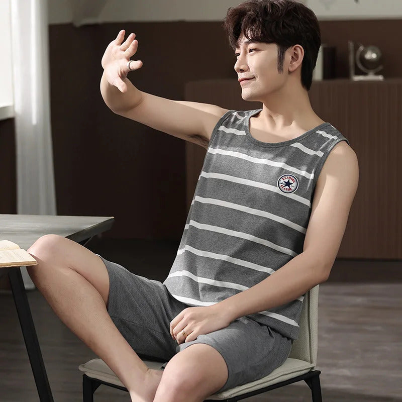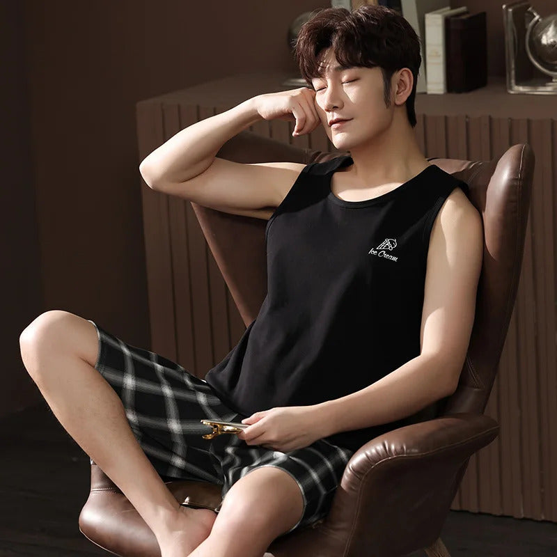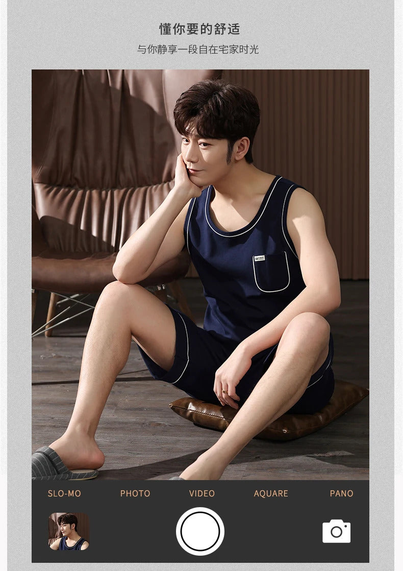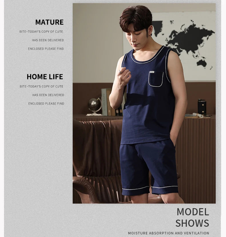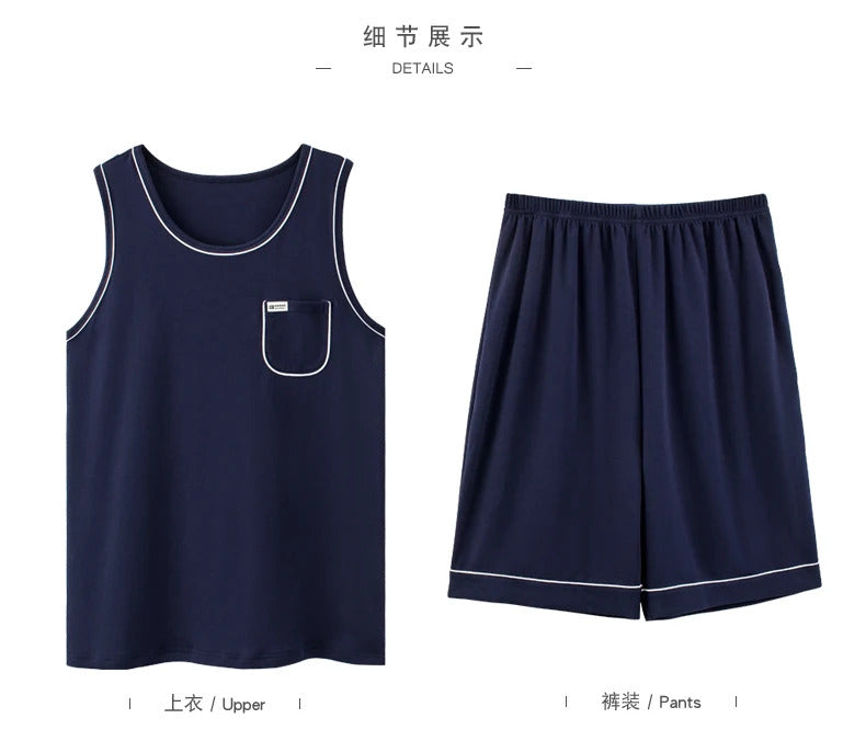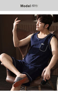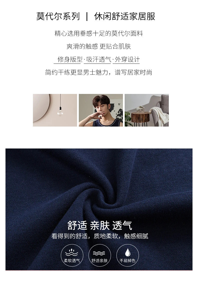 睡衣男L-4XL Mens Modal Cool Pajamas Set Summer Round Collar Shorts Modal Nightwear Fashion Gentleman Pijamas Elegant Sleepwear