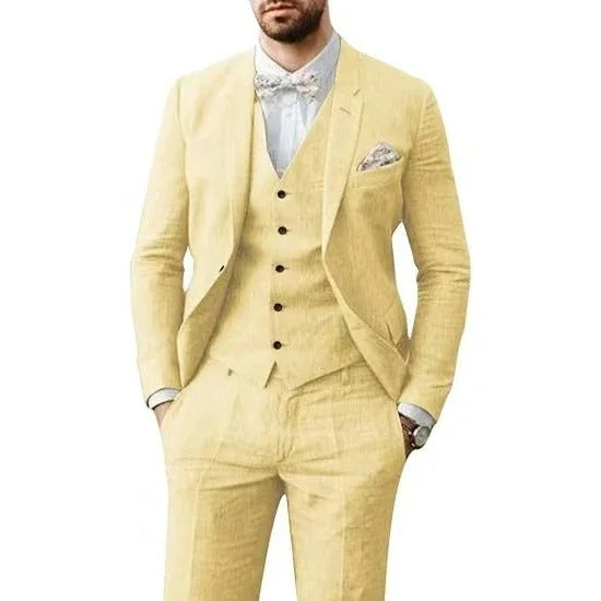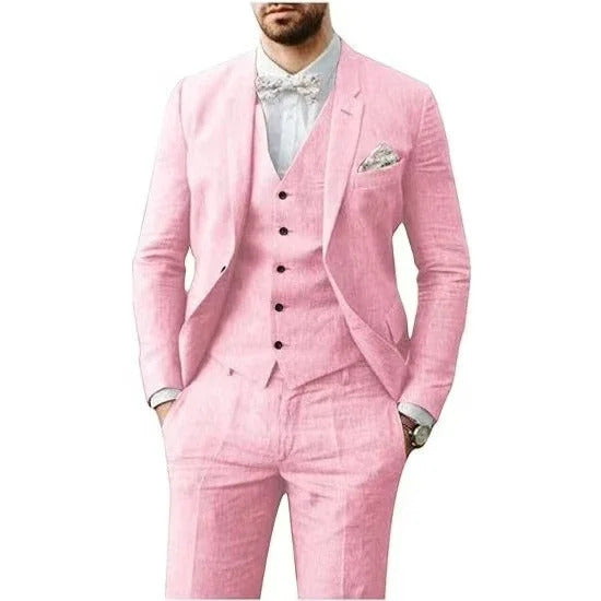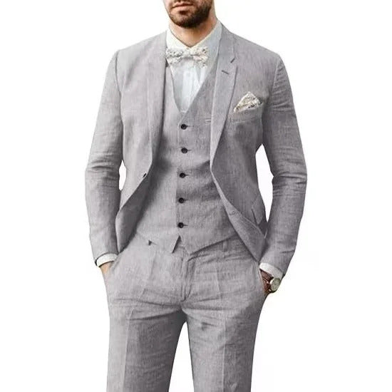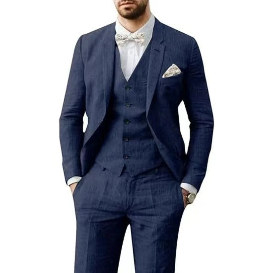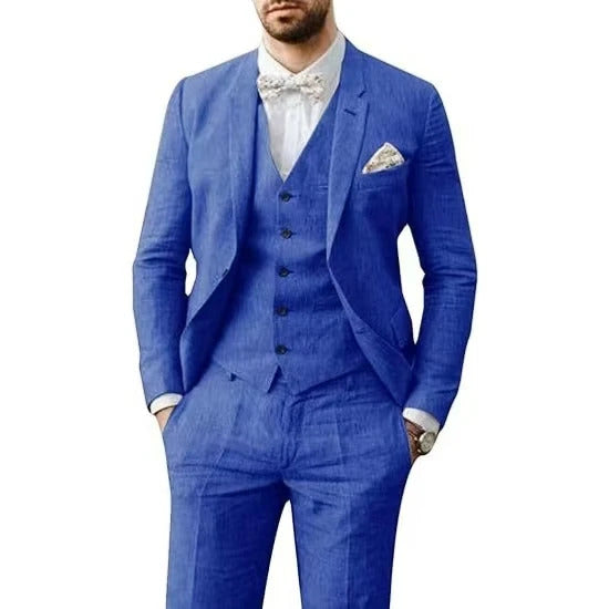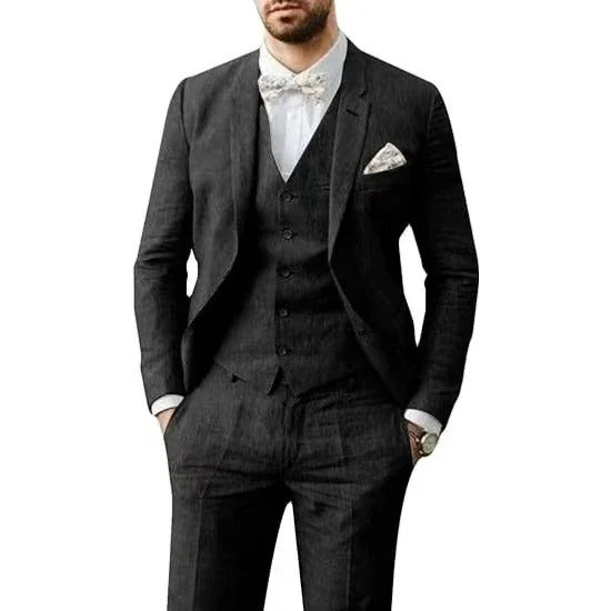 礼服男Linen Suits for Men 3 Pieces Blazer Vest and Pants Set Notched Lapel Elegant Tuxedo Set for Wedding Business Evening Party