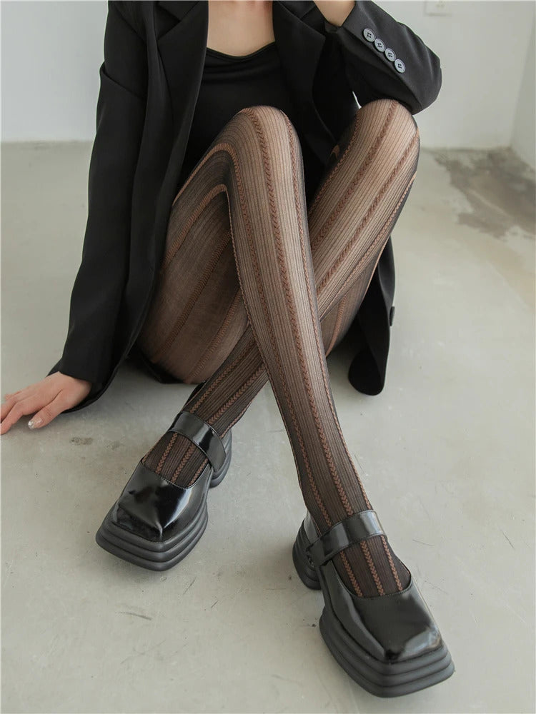 丝袜Lingerie Striped Tights Women Sexy Lace Mesh Fishnet Stockings JK Lolita Pantyhose Female Sexy Slim Women Tights Pantyhose