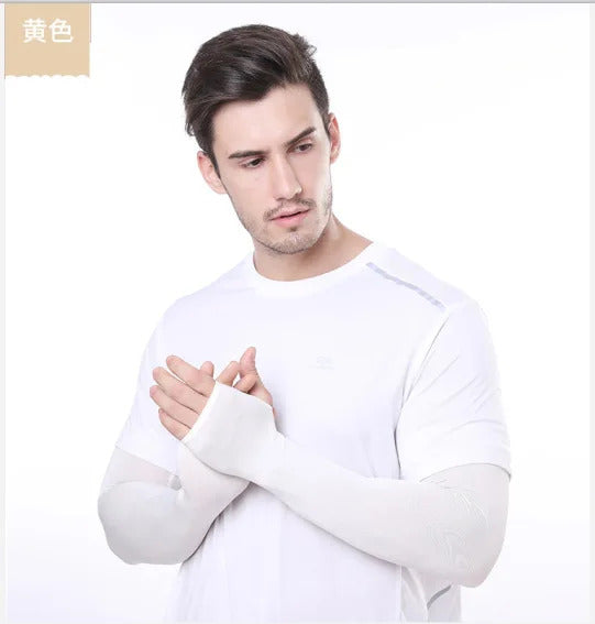 防晒冰袖女Long Gloves Sleeve Sun UV Protection Hand Protector Arm Sleeves Ice Silk Sunscreen Outdoor cool Half Finger sports golf unisex