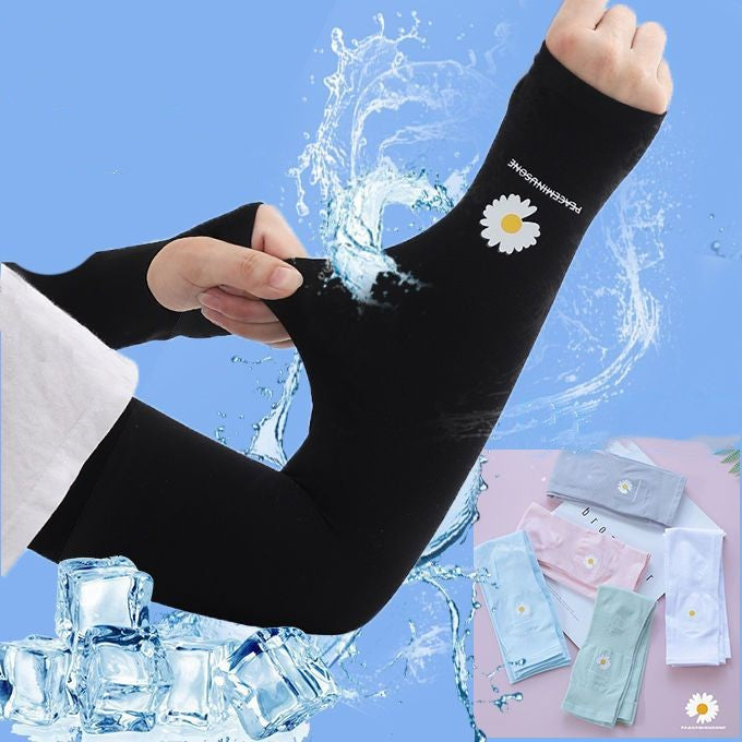 防晒冰袖女Long Gloves Sun UV Protection Hand Protector Cover Arm Sleeves Ice Silk Sunscreen Sleeves Outdoor Arm Warmer Half Finger Sleeves