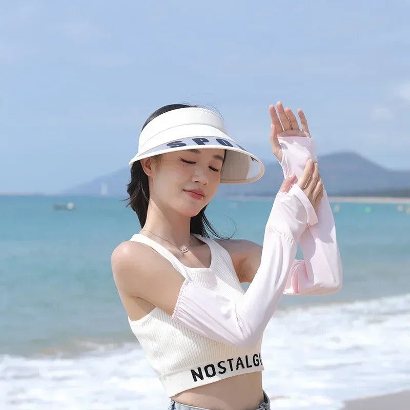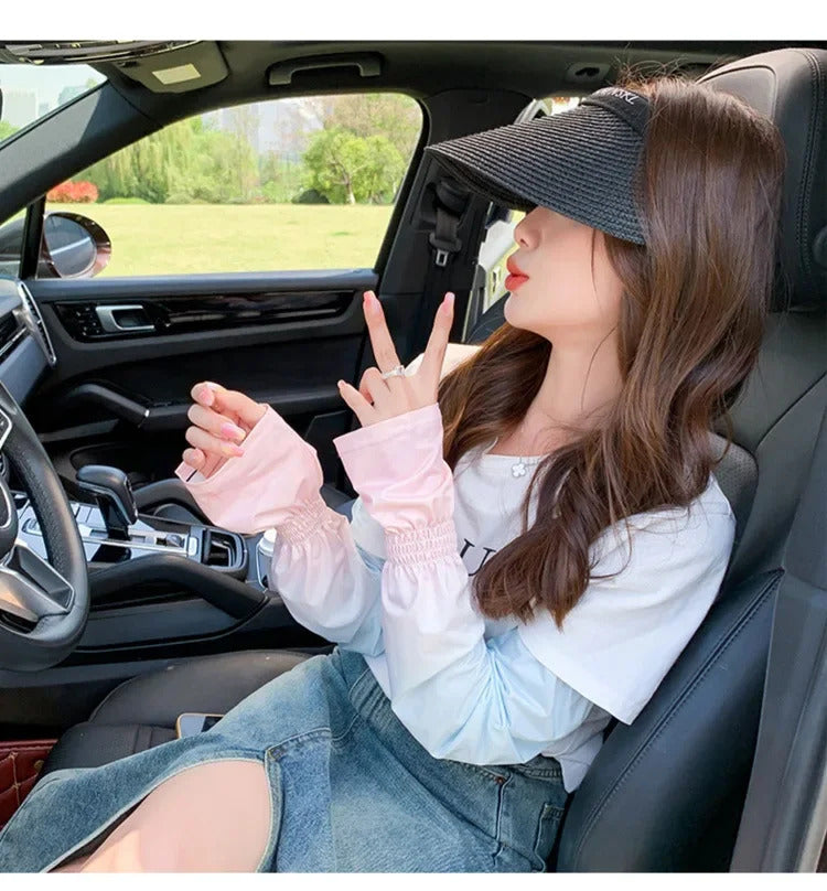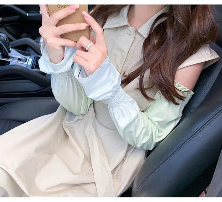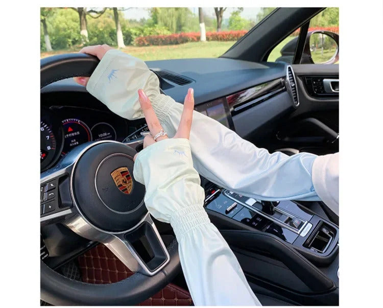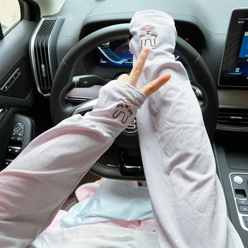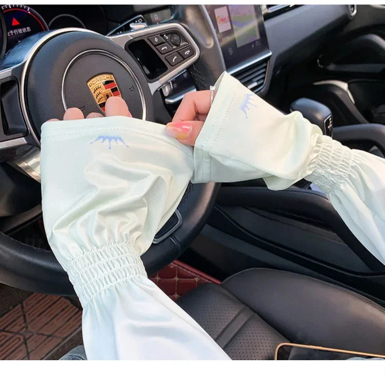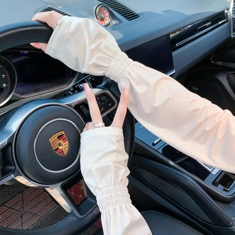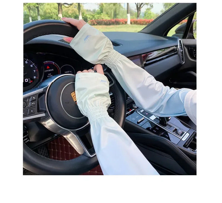 防晒冰袖女Loose Ice Silk Sun-protective Sleeve for Women Summer Driving Arm Sleeves Outdoor Cycling Long Gloves Sun Protection Arm Sleeve