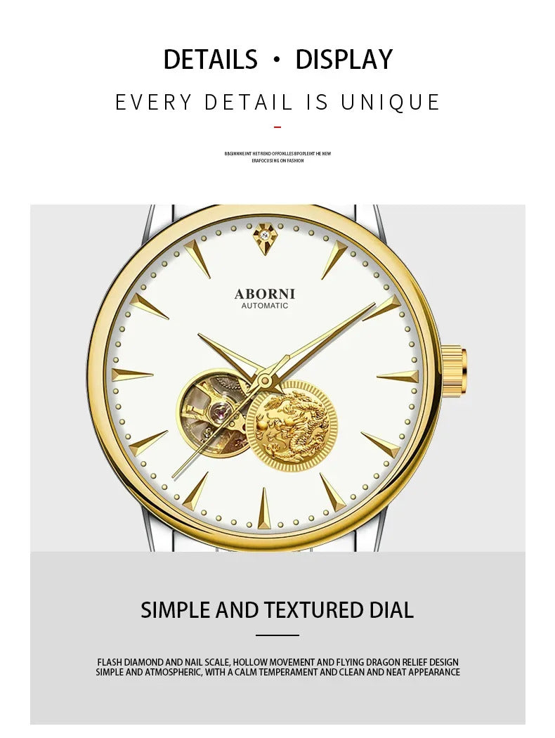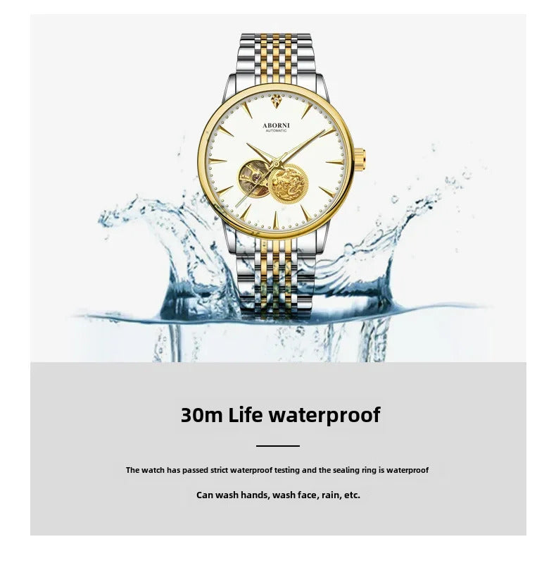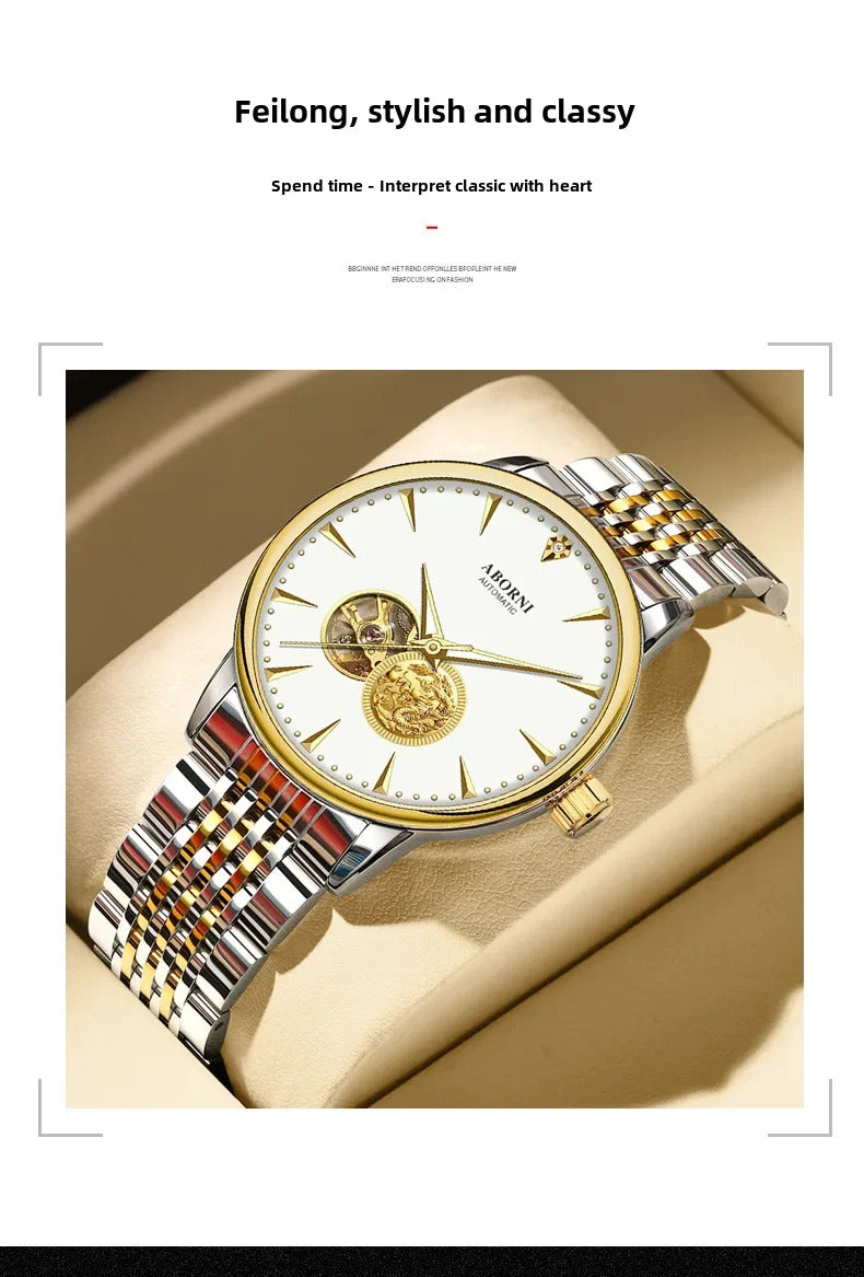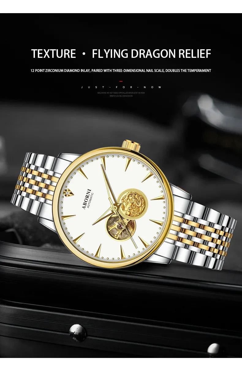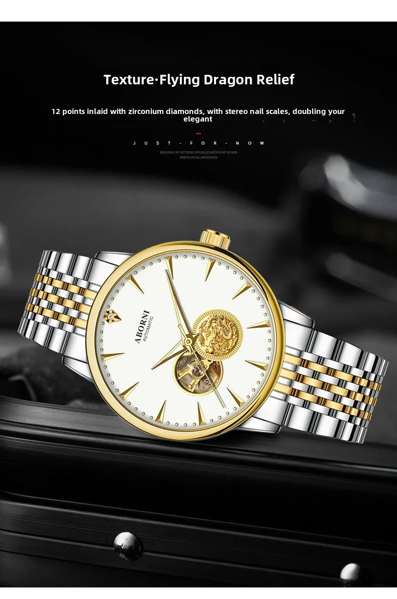手表男手表男Luxury Authentic Men's Mechanical Watch Dragon Year Automatic Wristwatch Waterproof Hollow Out Air Driven Business Watch