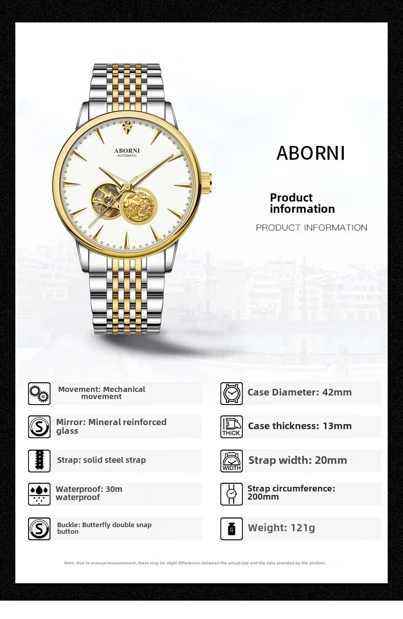 • Automatic Mechanical Watch :The watch features an automatic mechanical movement, offering precision and reliability. It's a perfect combination of old-world charm and modern functionality.