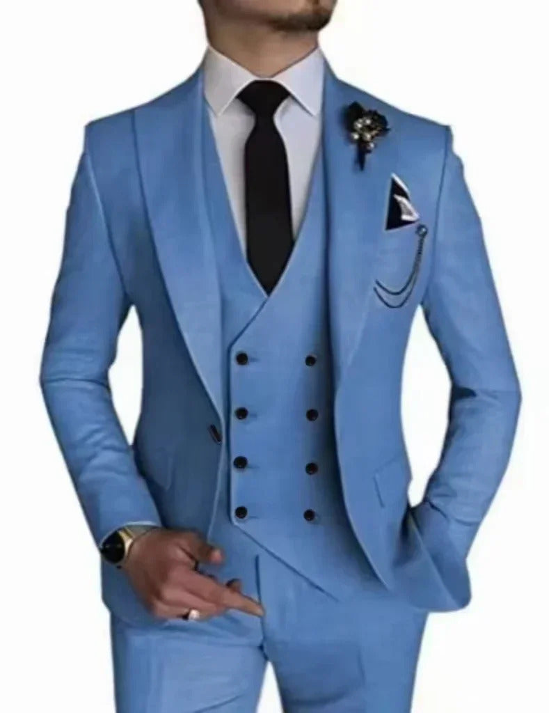 礼服男Luxury Men's Suit Single Button Business Suit 3-piece Wedding Groom Tuxedo (Jacket+Vest+Pants) Elegant High Quality 2024
