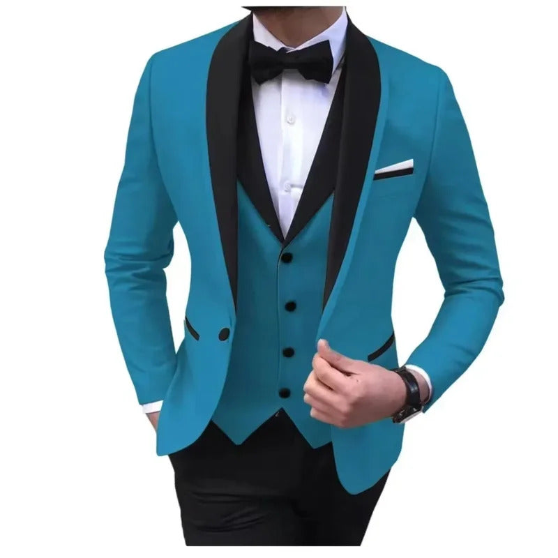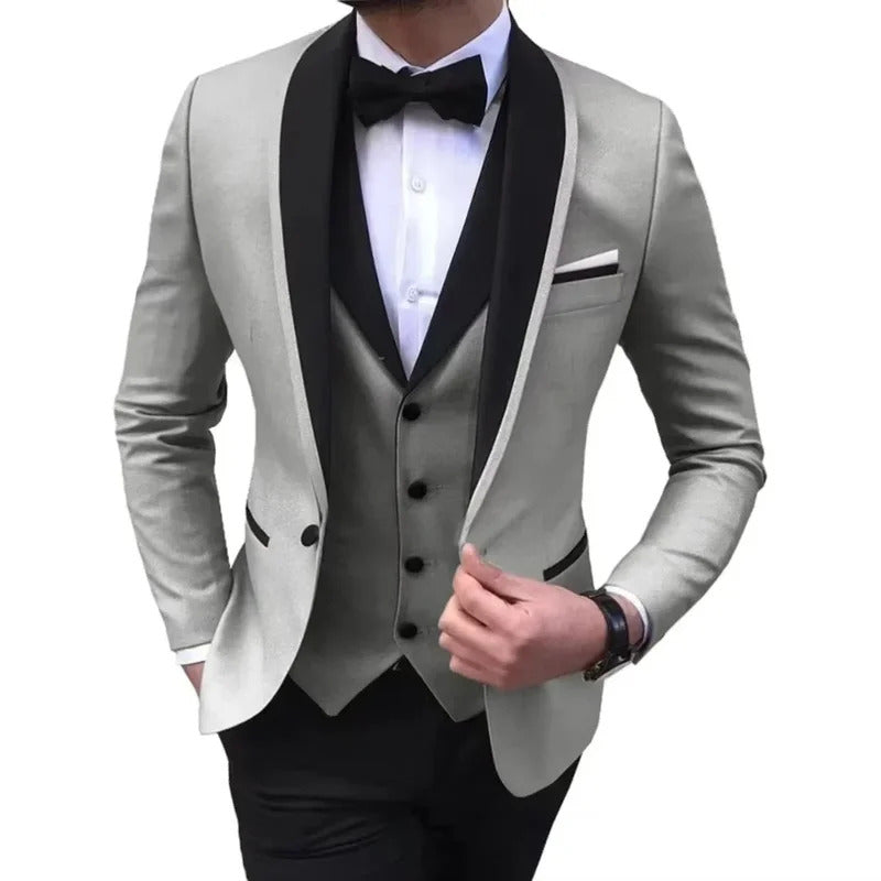 礼服男Luxury Men's Suit Slim Fit 3-Piece Set Men's Suit Wedding Evening Parties Prom Dances Ceremony Groom Fashion Single Button Coat