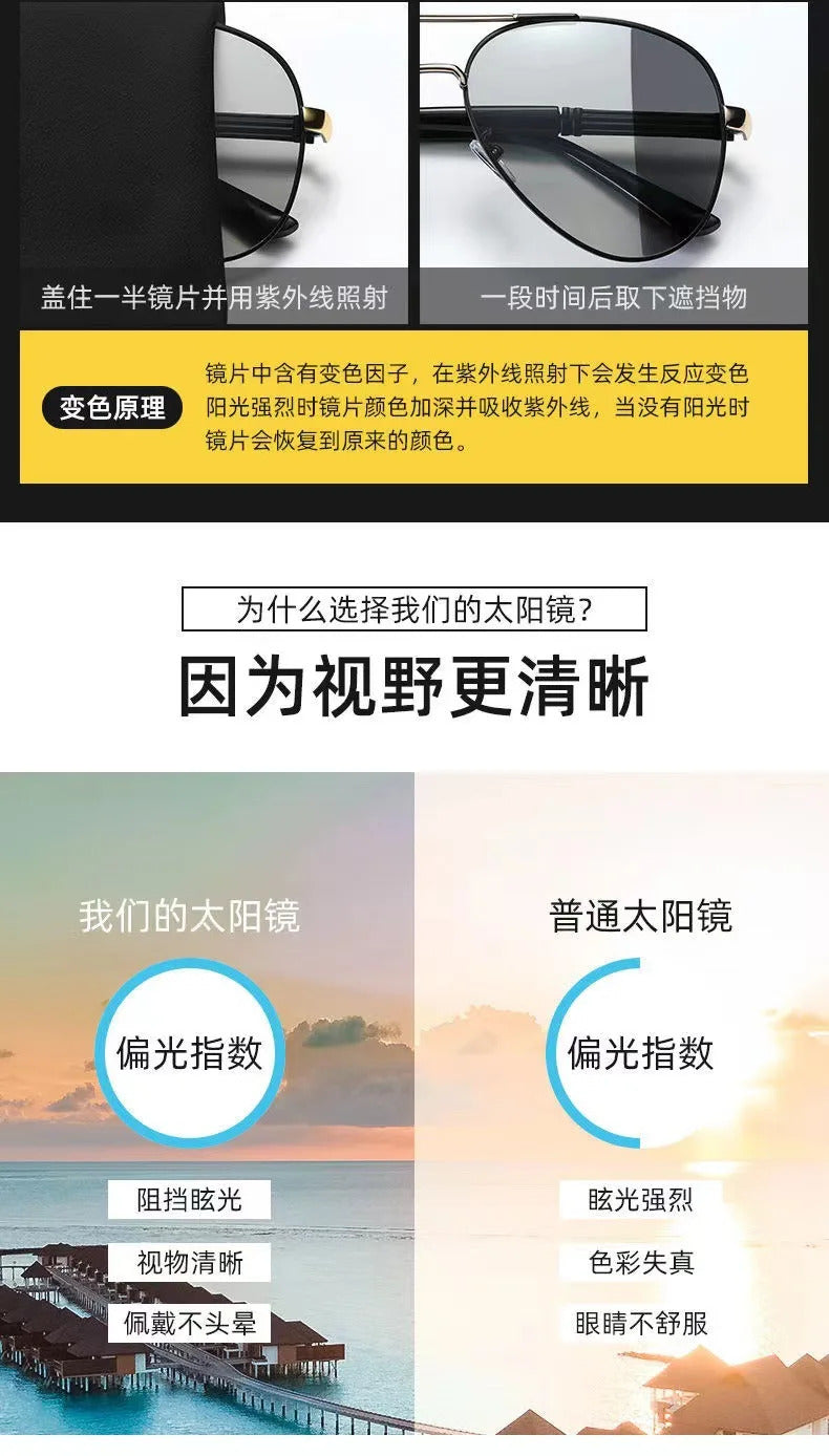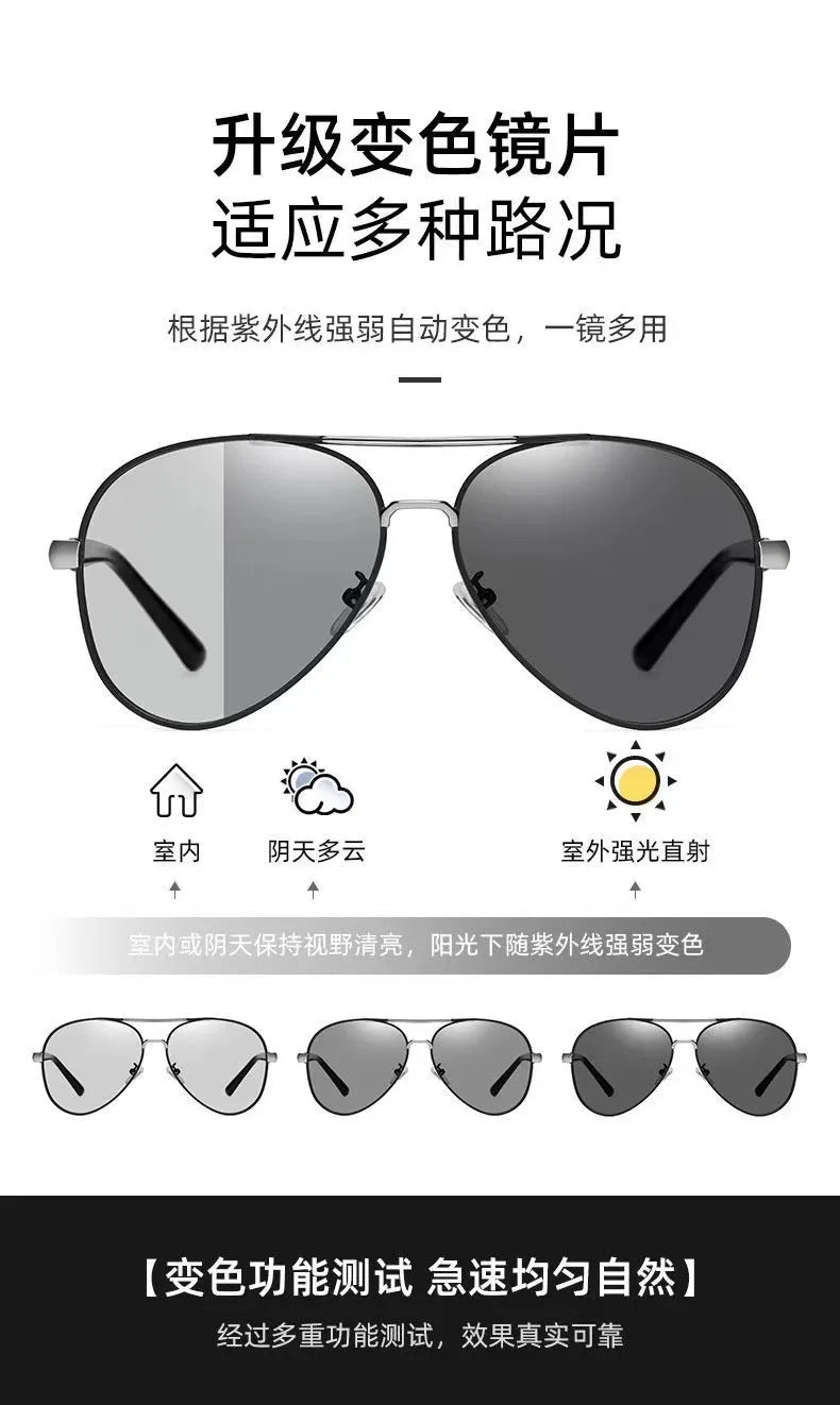 太阳镜男Luxury Metal Photochromic Sunglasses Men Women Fashion Polarized Sun Glasses Stylish Chameleon Anti-glare Driving Shades UV400