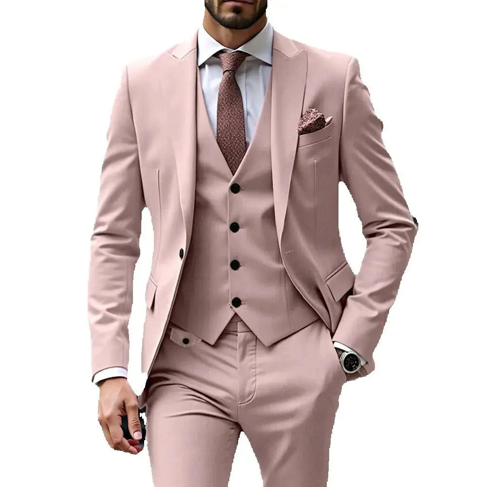 礼服男Luxury Wedding Pink Suits for Men Elegant Groom One Button Peak Lapel Blazer High Quality 3 Piece Jacket Pants Vest Sets