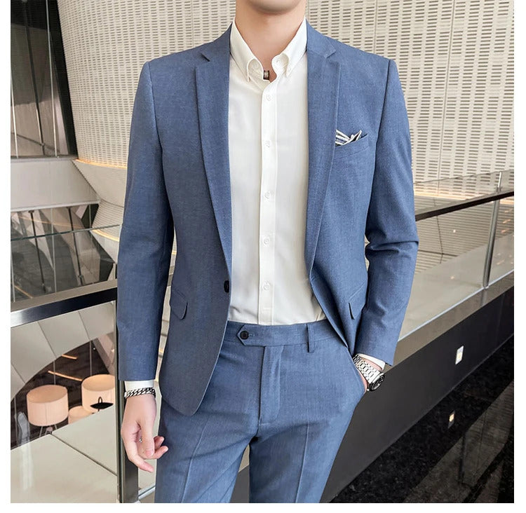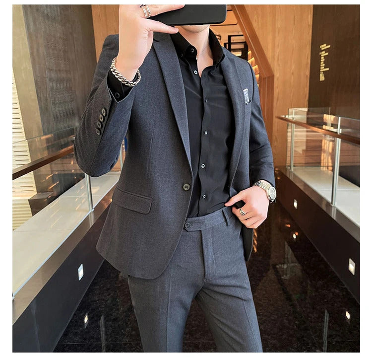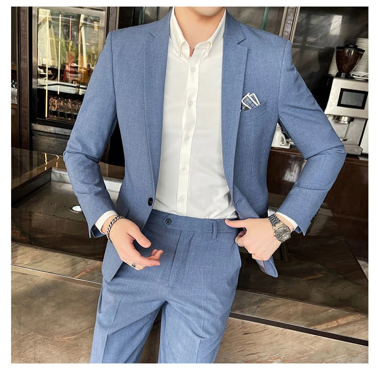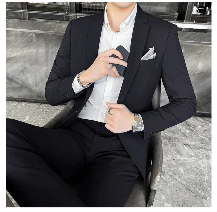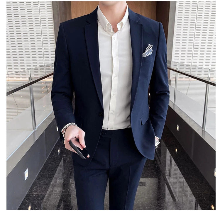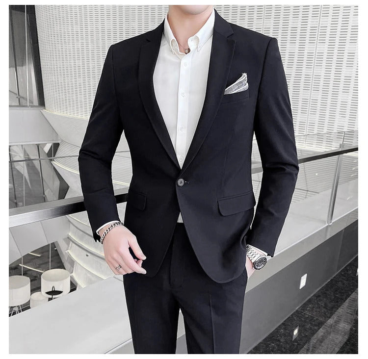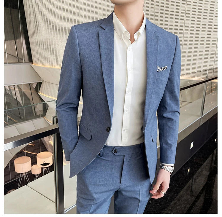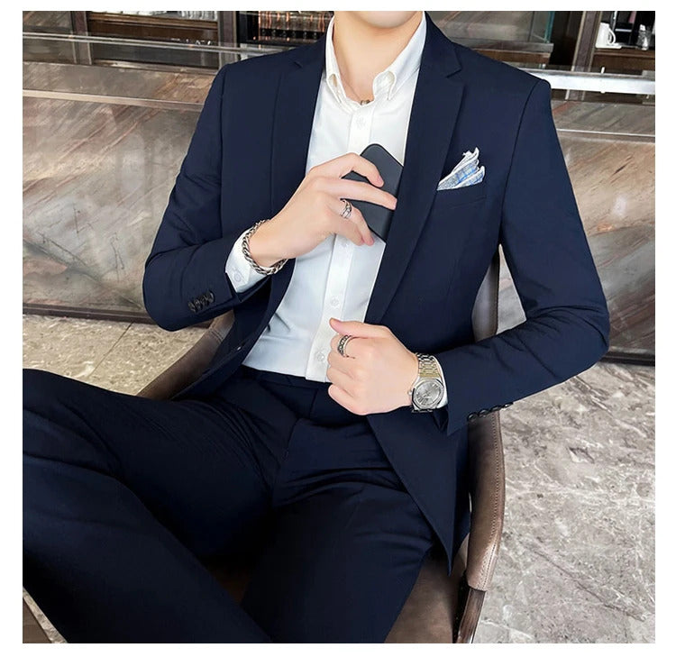 商务装男M-4XL All-in-one Slim Fit (suit + Trousers) Stylish All-in-one Handsome Classic Wedding Business Casual Solid Color 3-piece Set