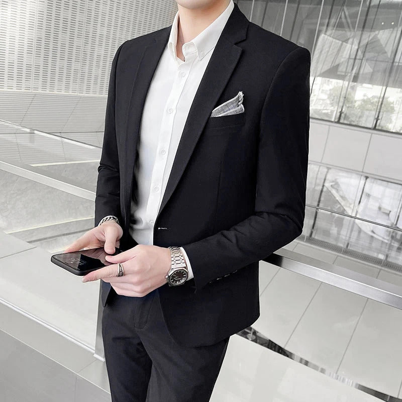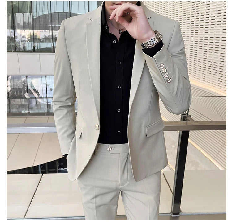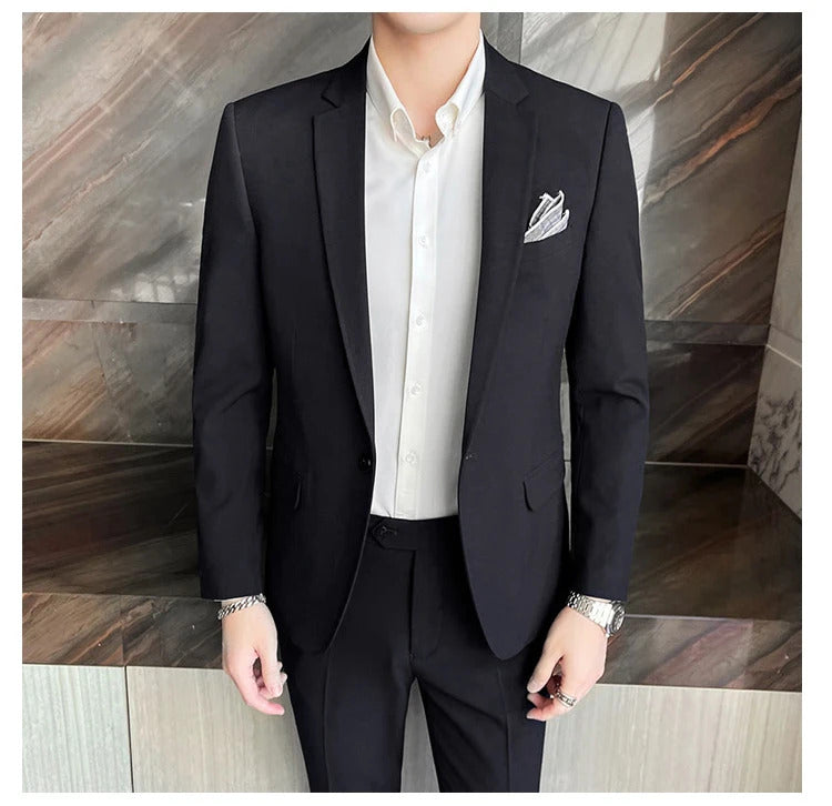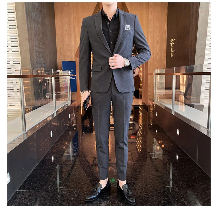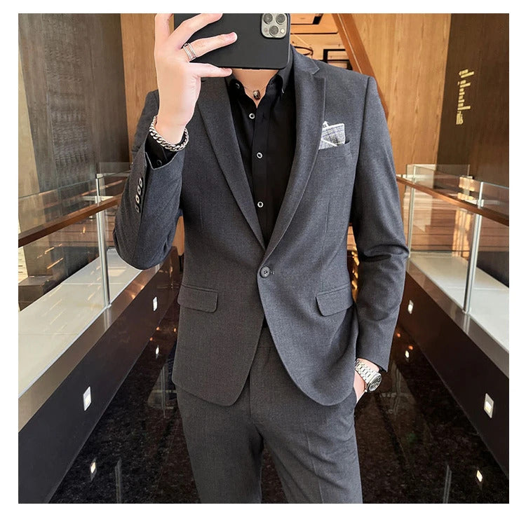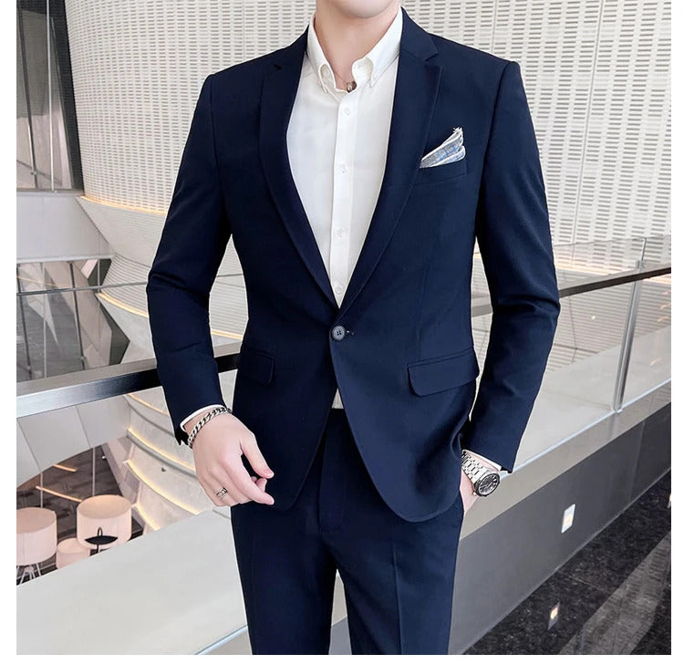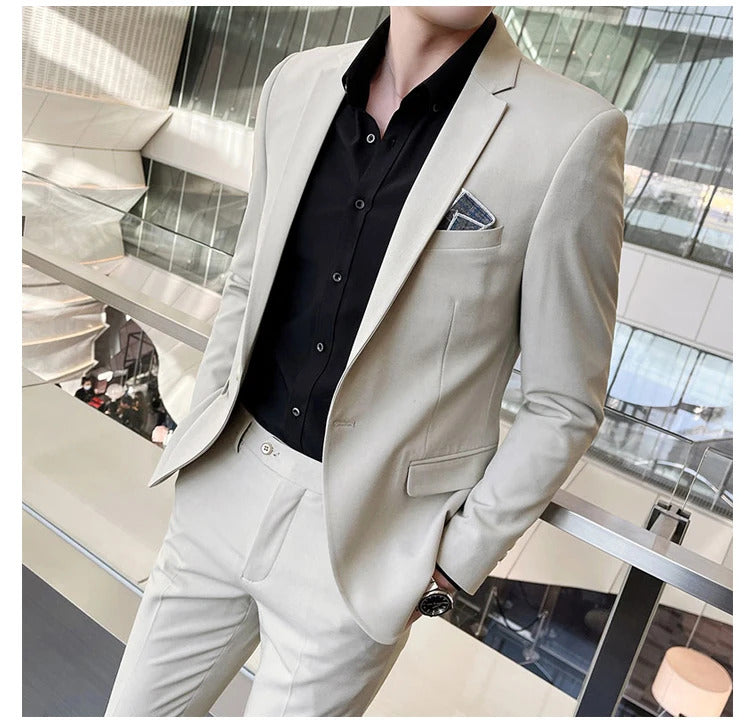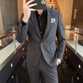 商务装男M-4XL All-in-one Slim Fit (suit + Trousers) Stylish All-in-one Handsome Classic Wedding Business Casual Solid Color 3-piece Set