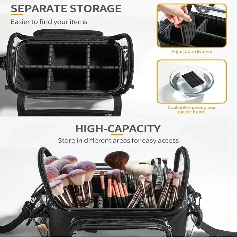 包包Makeup Brush Holder Backpack Makeup Artist Travel Case Clear Waterproof Cosmetic Organizer Bag with Adjustable Strap and Divider