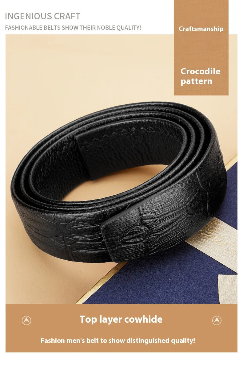 腰带Male Crocodile Pattern Belts Automatic Buckle High Quality Business Belt Fashion Luxury Designer Men's Waistband 3.4cm No Buckle