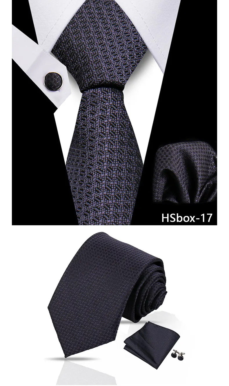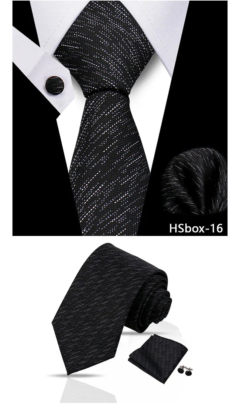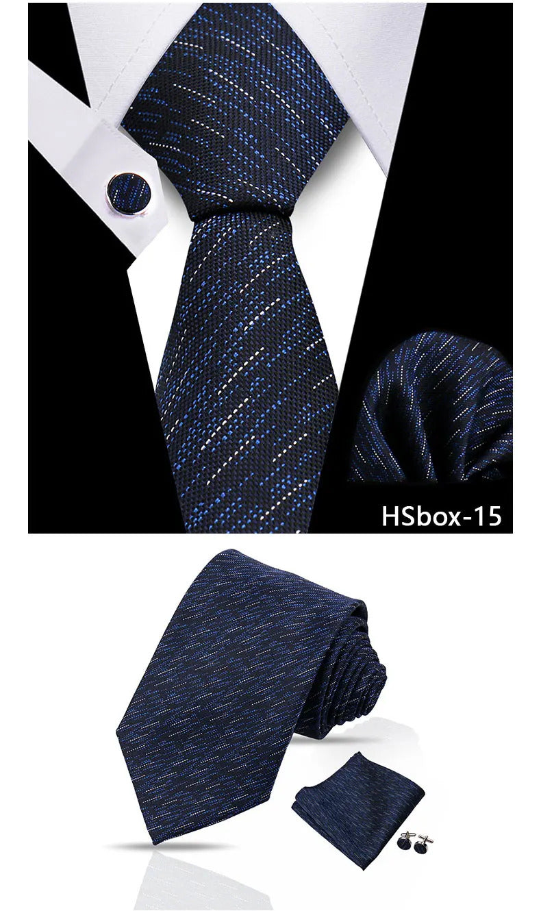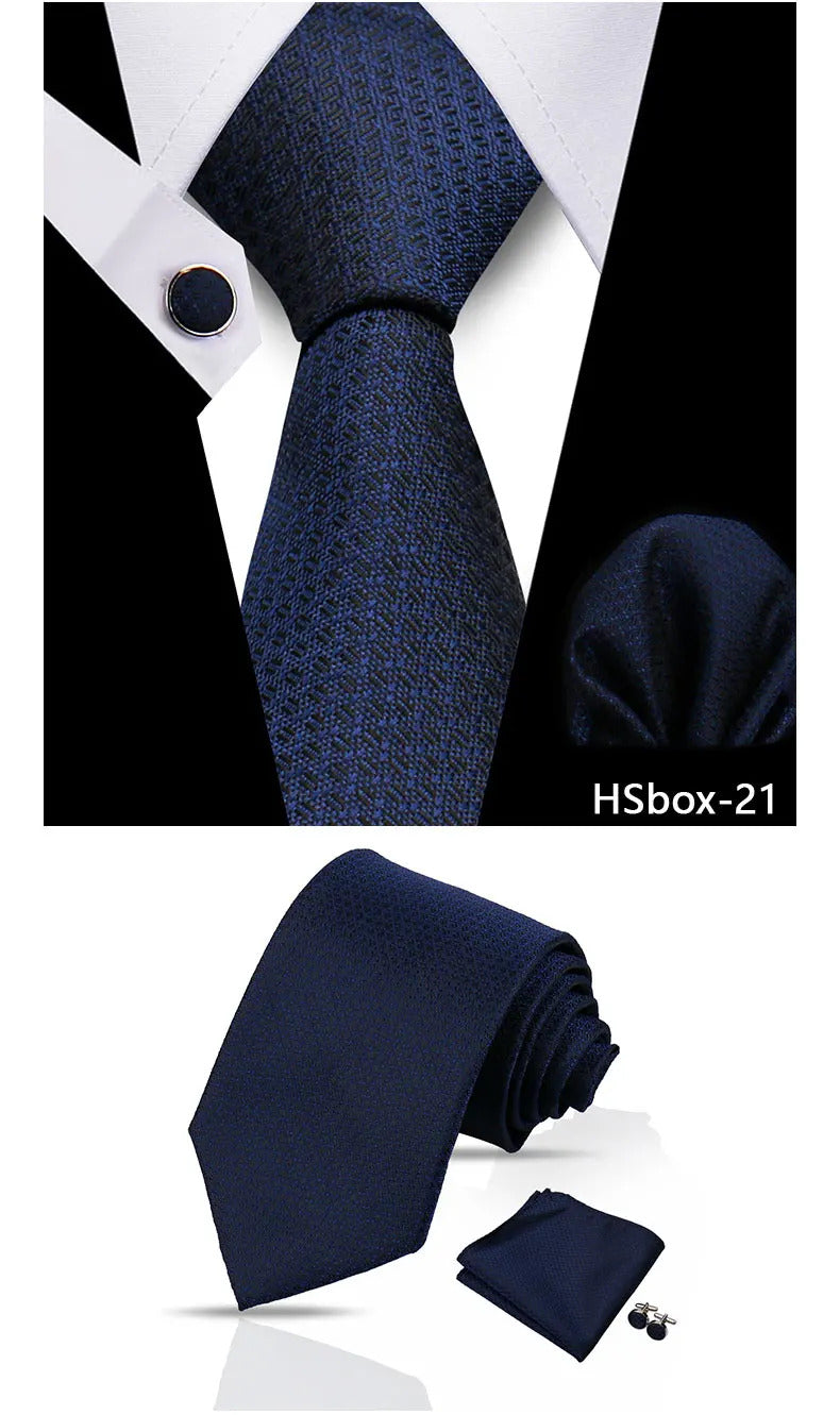 领带男Man Tie Set Luxury 8CM Necktie For Men Business Pocket Square Cufflinks 3pcs Set Suit For Wedding Groom Groomsman Shirts Gravata