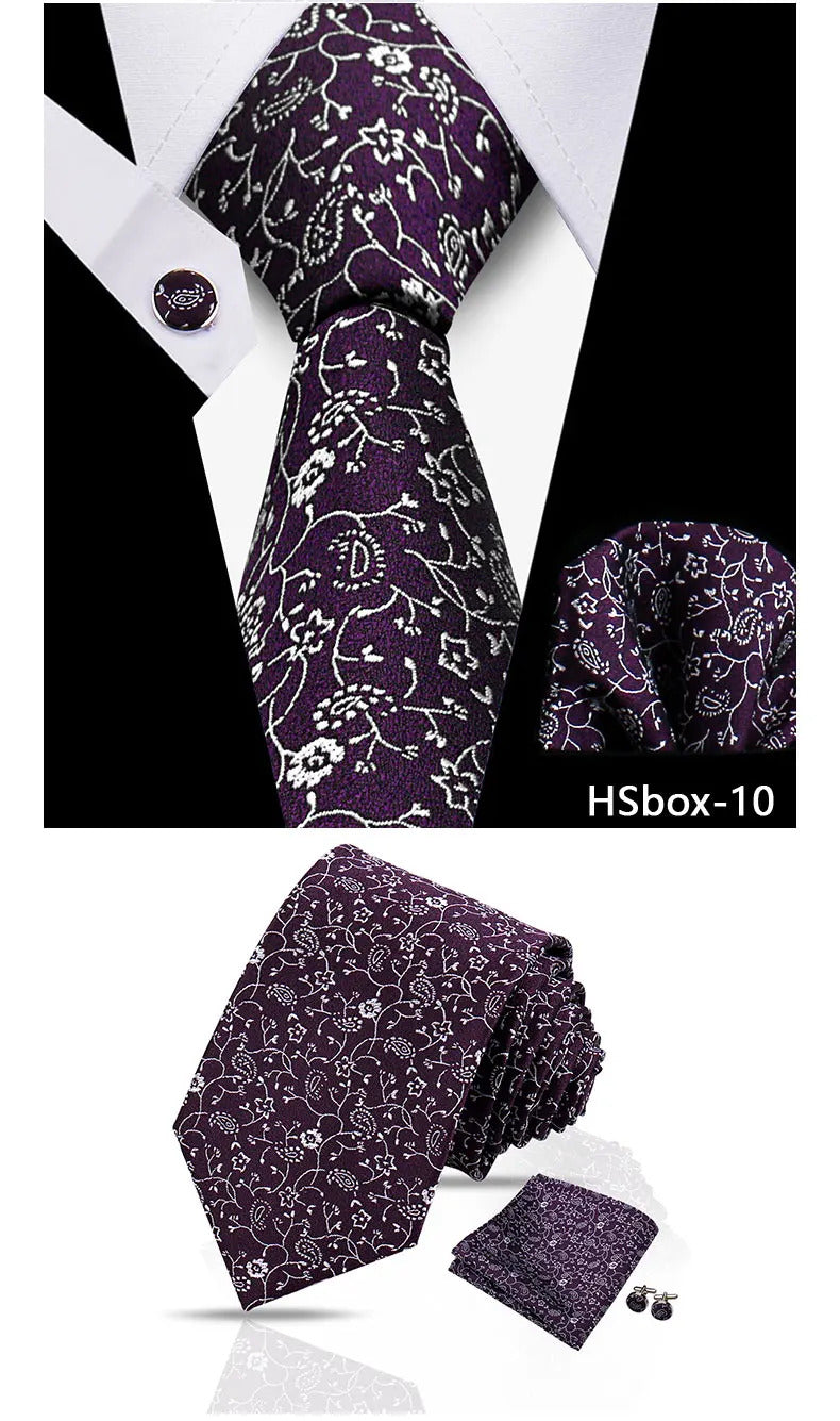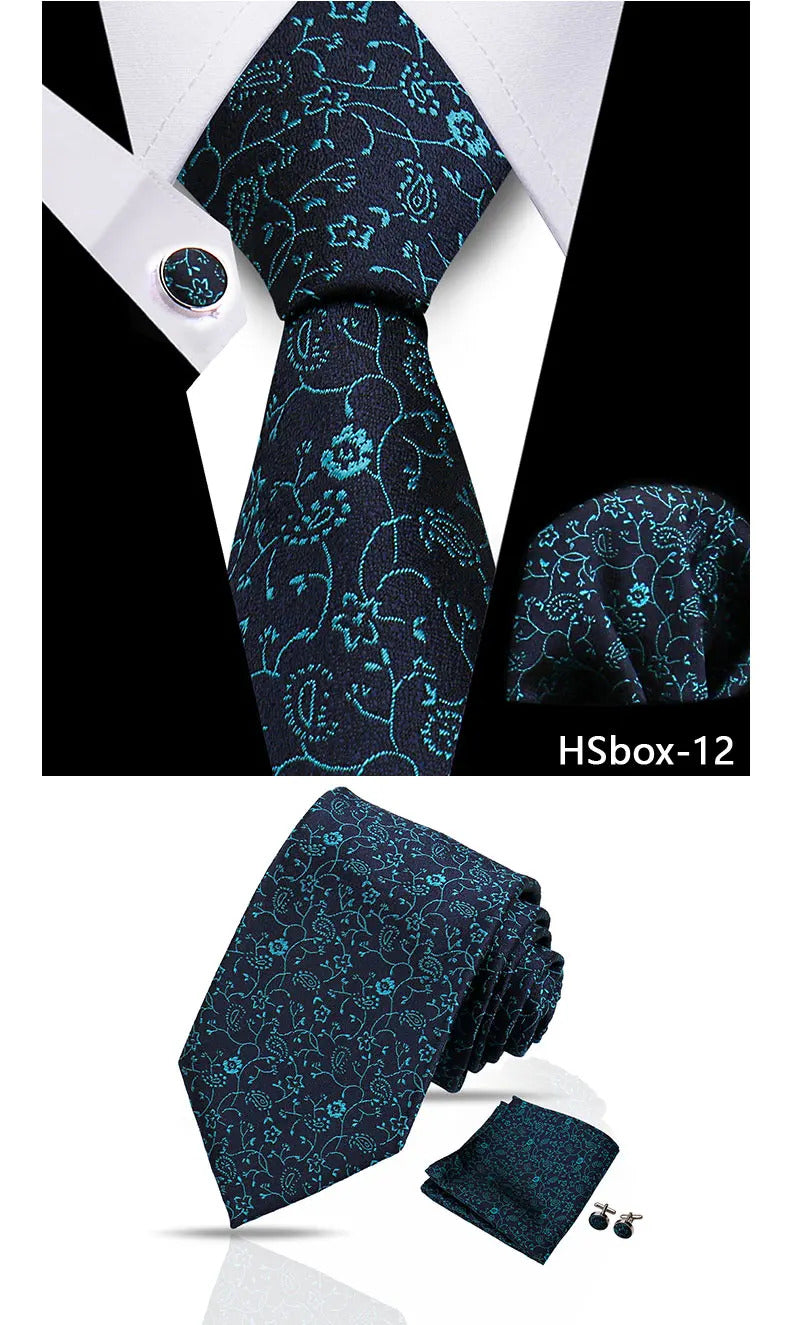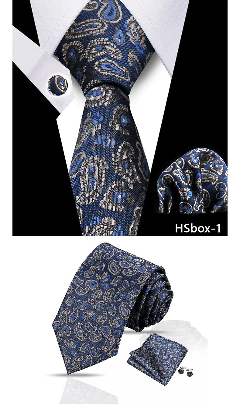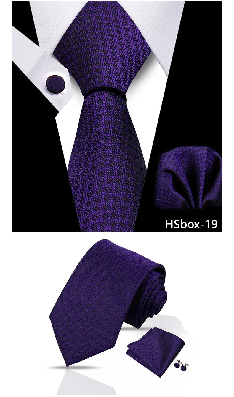 领带男Man Tie Set Luxury 8CM Necktie For Men Business Pocket Square Cufflinks 3pcs Set Suit For Wedding Groom Groomsman Shirts Gravata
