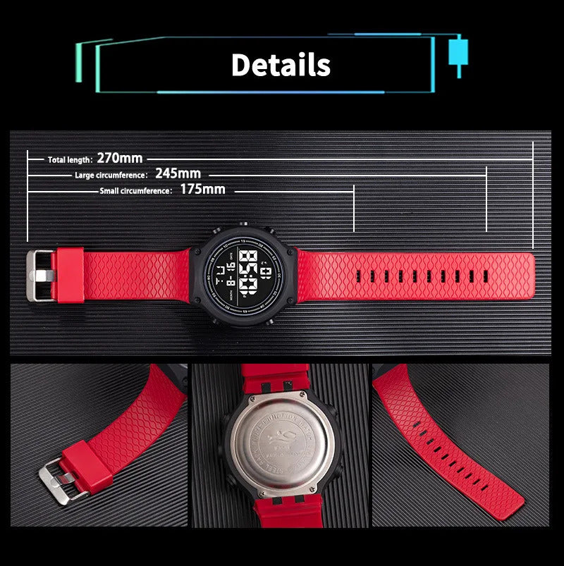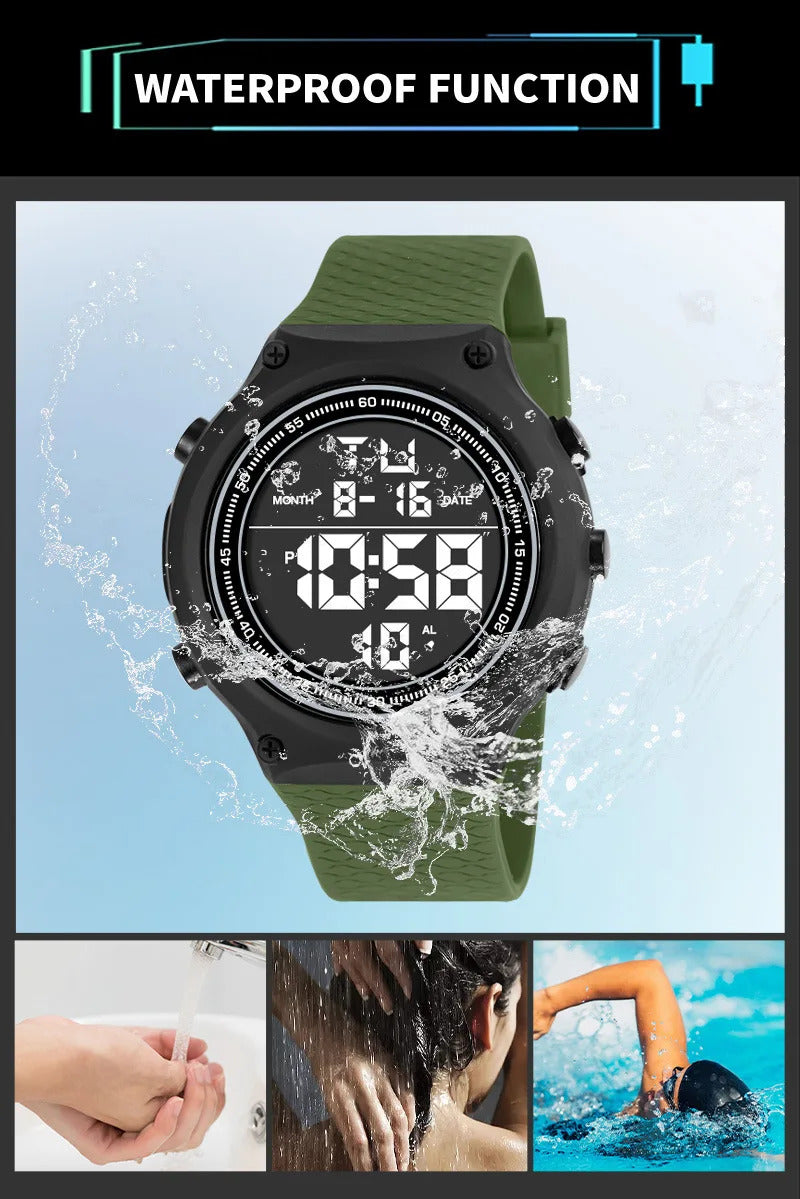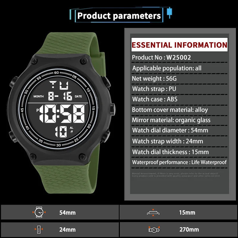 Digital Watch: Fashionable sporty dial design. Large Dial and numbers with light, show time clear in the dark. Easy to see the time clearly in the light, easy to read.