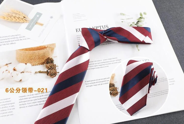 领带男Men's 6CM Versatile Leisure Ties Blue Pink Wine Flower Striped Tie Fit Best Man Formal Business Groom Groomsman Wedding Necktie