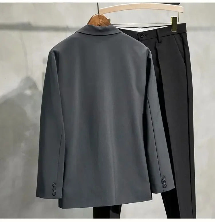 商务装男Men's Autumn 2021 New Medium-length Jacket Korean Style Business Commuting Slimming Double-buttoned Western-style Suit