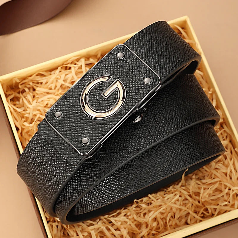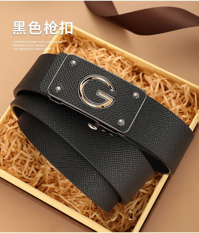 腰带Men's Belt Fashionable Simple Automatic Buckle Leather Male Belt for Men Casual Business