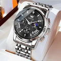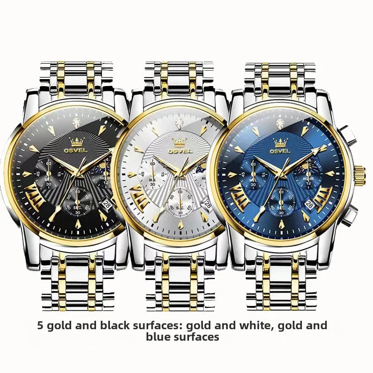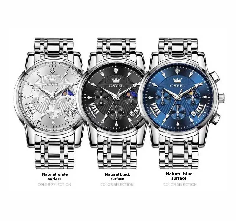 手表男Men's Business Casual Watch Mechanical Wristwatch Elegant Design Three-eye Calendar Non-mechanical Luxury Timepiece