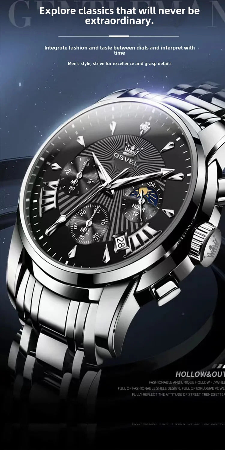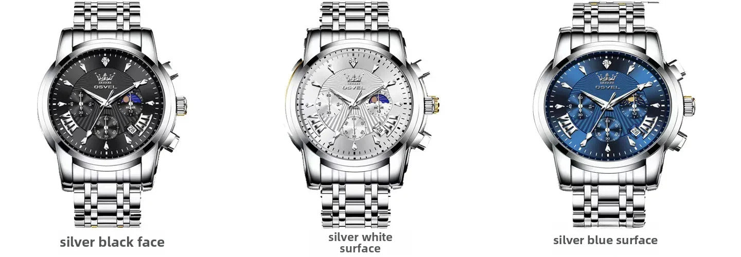 • Three-Eye Calendar :The watch features a unique three-eye calendar design, offering a practical way to track dates and time.
