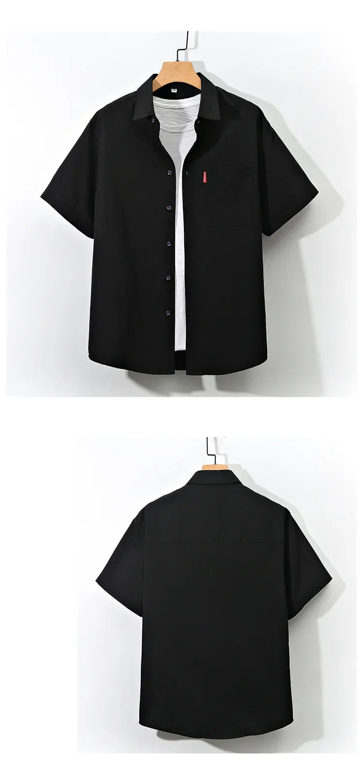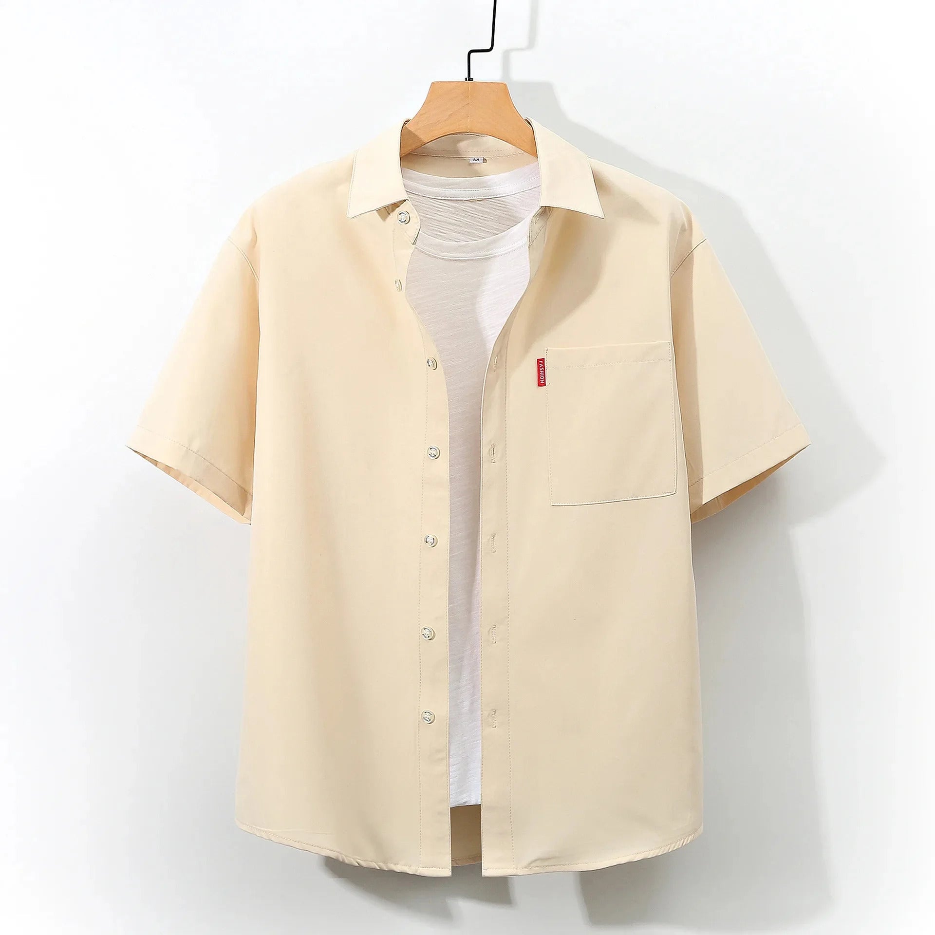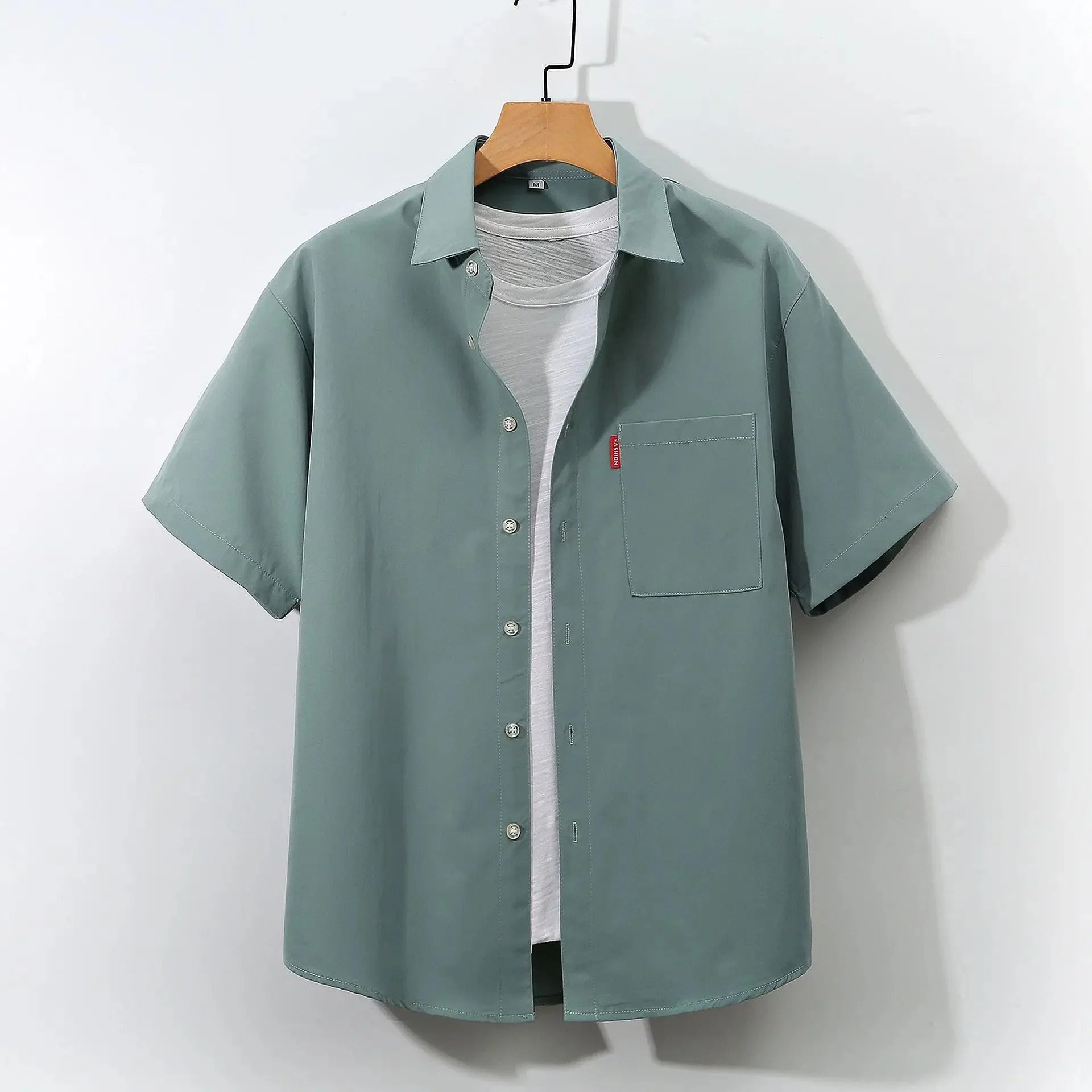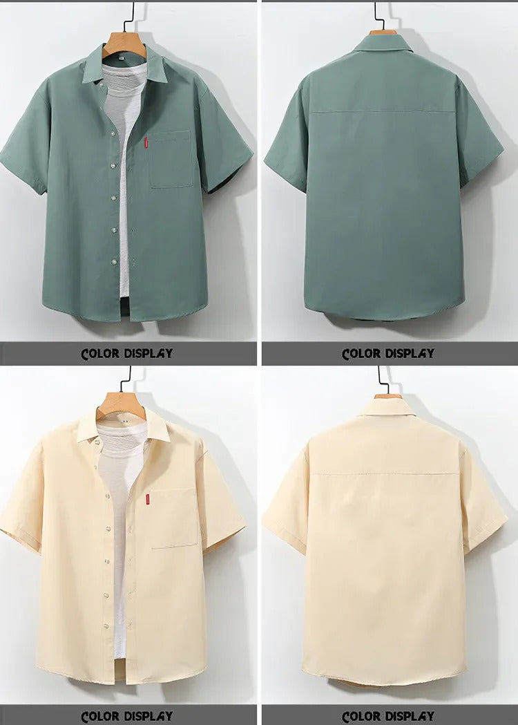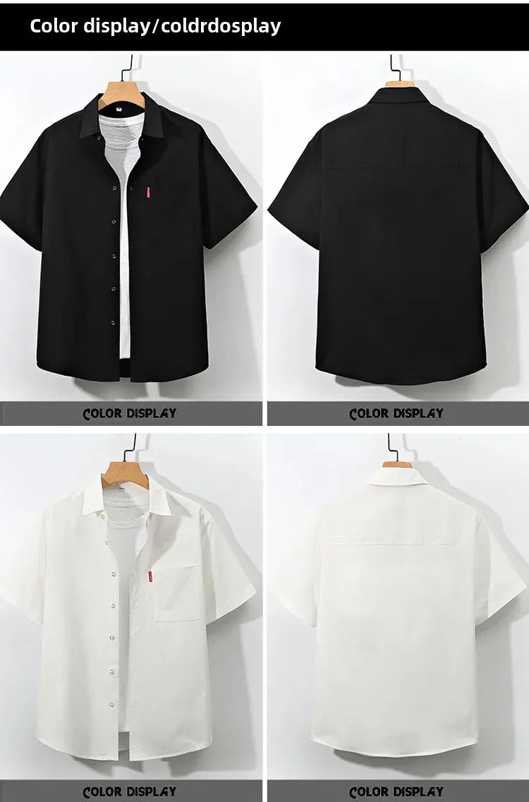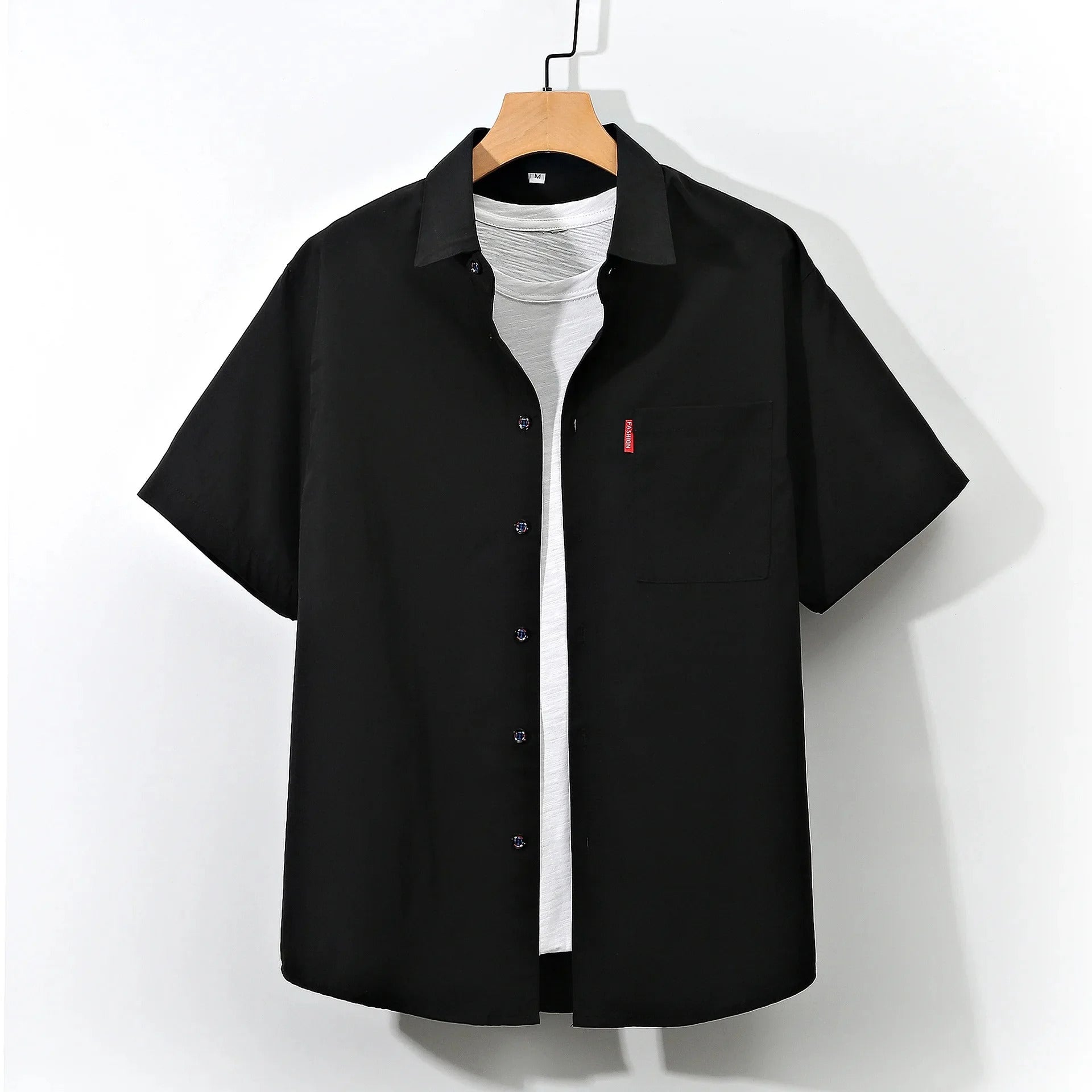 衬衫男Men's Casual Loose-Fit Short Sleeve Shirt Summer New Style Korean Fashion Solid Color Shirt Trendy Youth Half Sleeve Top