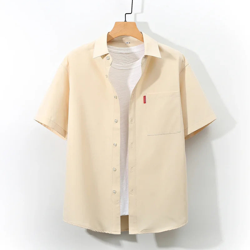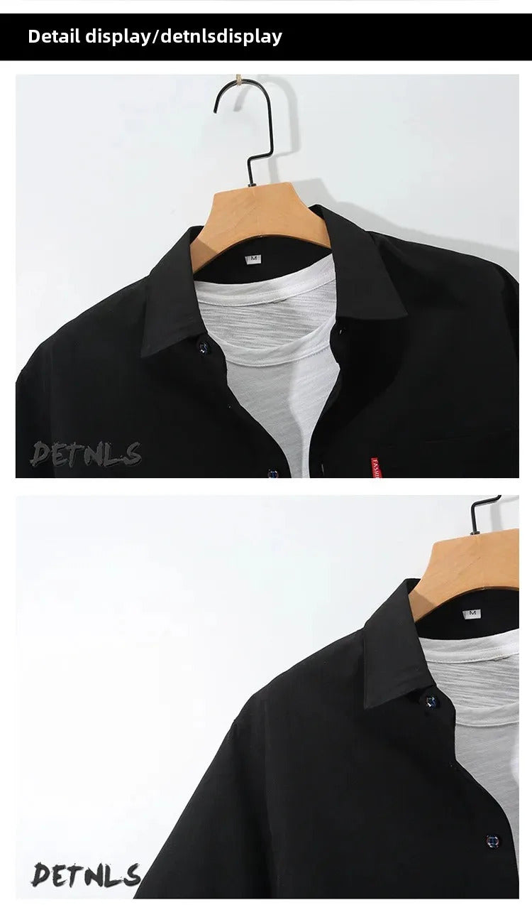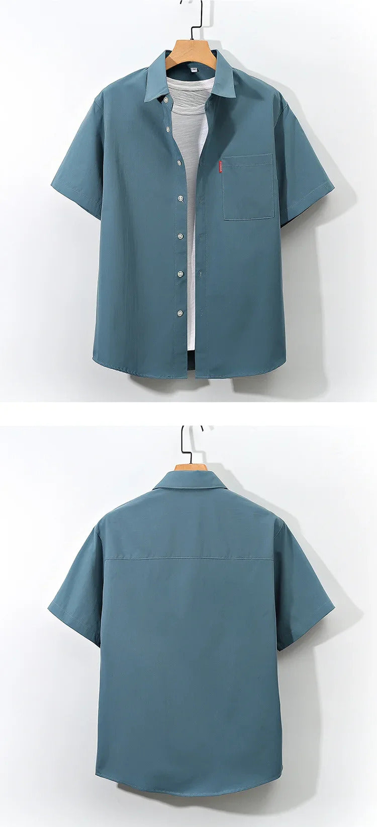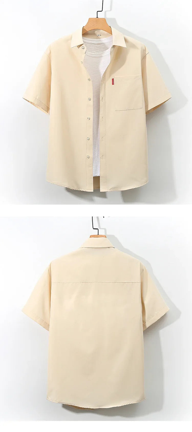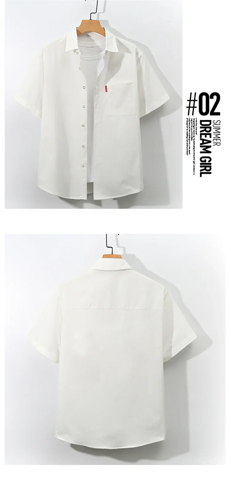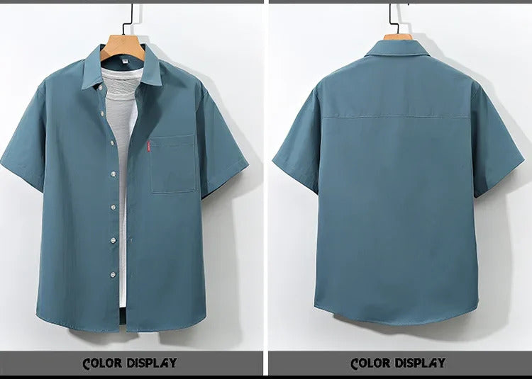 衬衫男Men's Casual Loose-Fit Short Sleeve Shirt Summer New Style Korean Fashion Solid Color Shirt Trendy Youth Half Sleeve Top