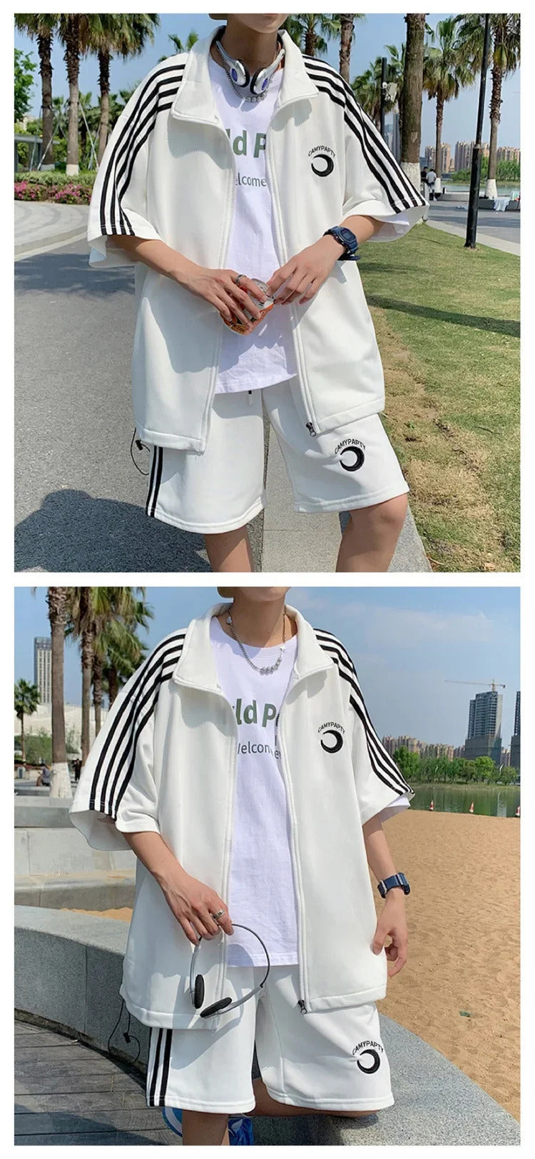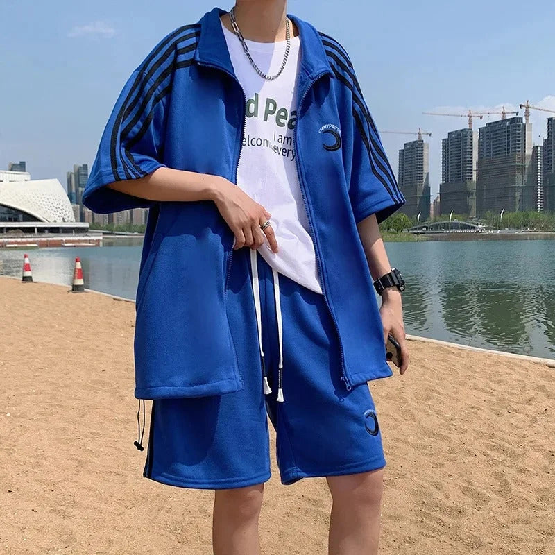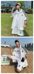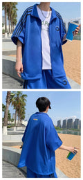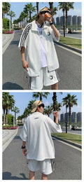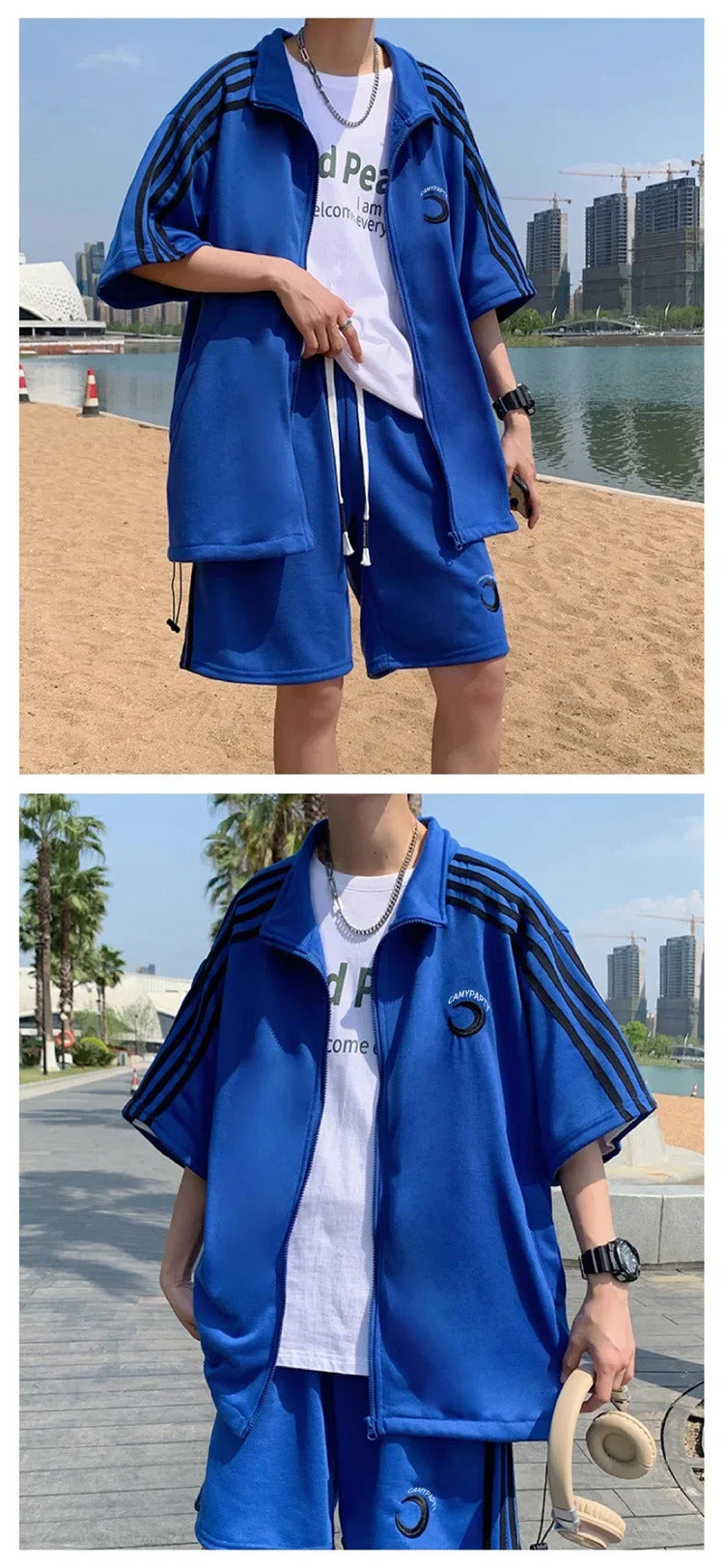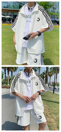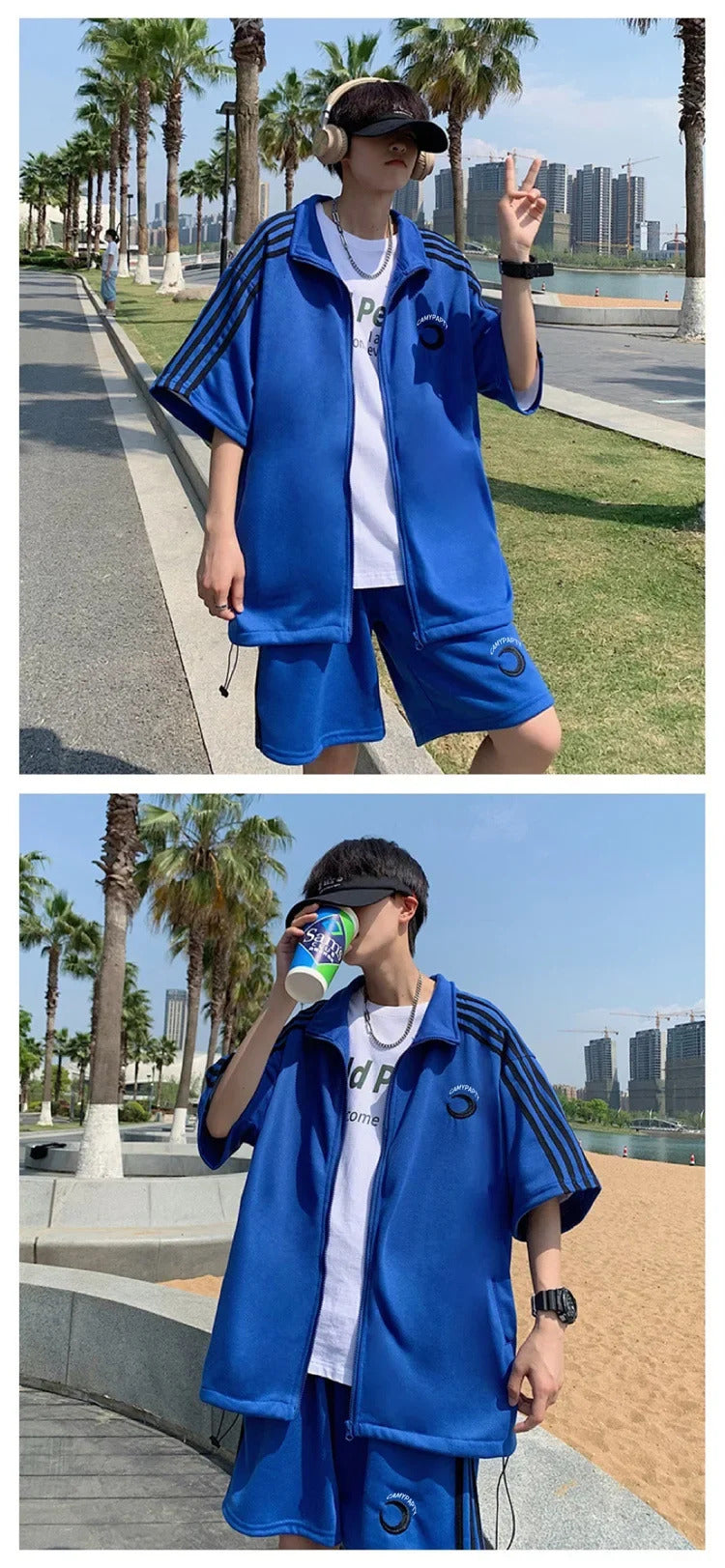 男士套装Men's Casual Suit 2022 Summer Hong Kong Style Loose Fit Jacket And Wide Leg Shorts 2-Piece Set Sporty Fashion From China