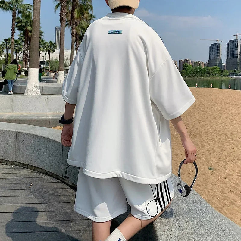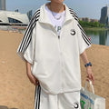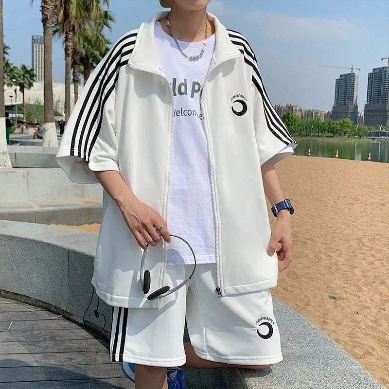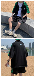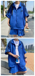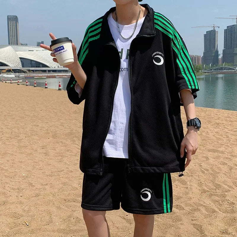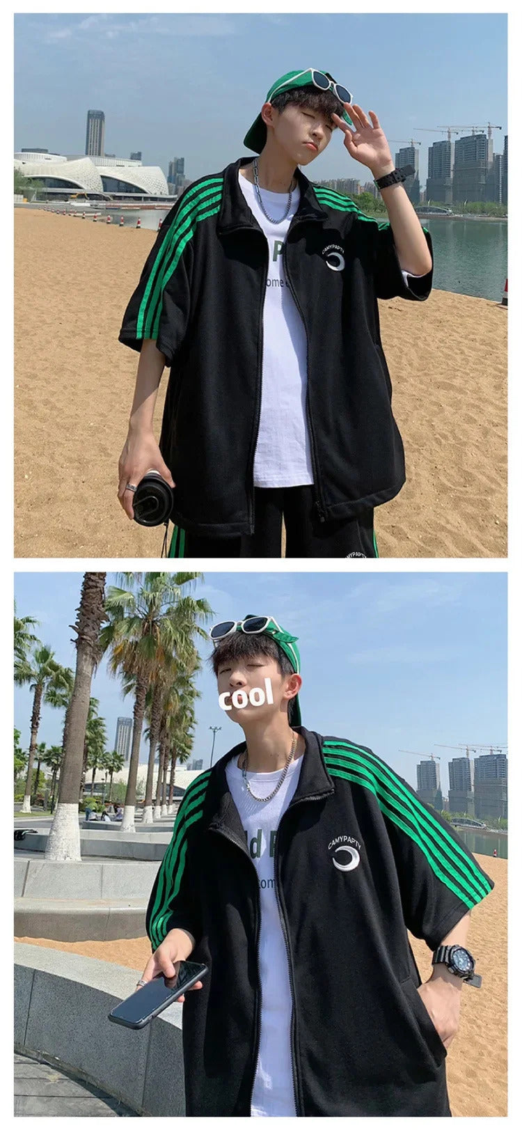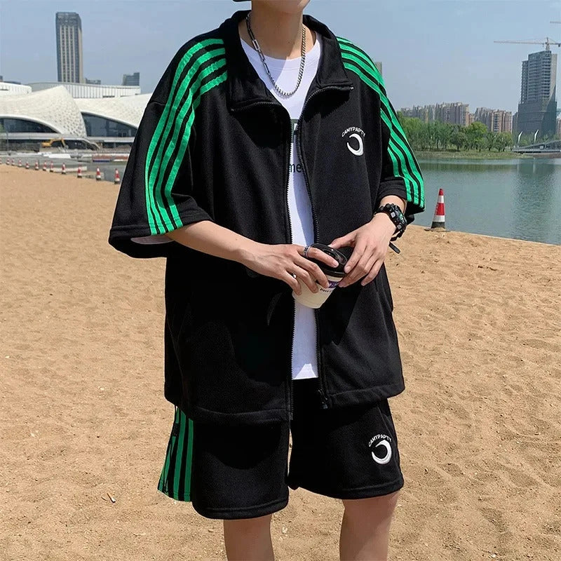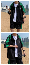 男士套装Men's Casual Suit 2022 Summer Hong Kong Style Loose Fit Jacket And Wide Leg Shorts 2-Piece Set Sporty Fashion From China