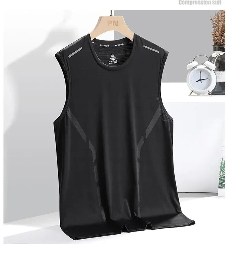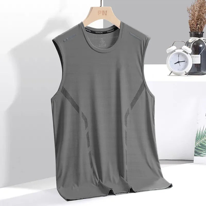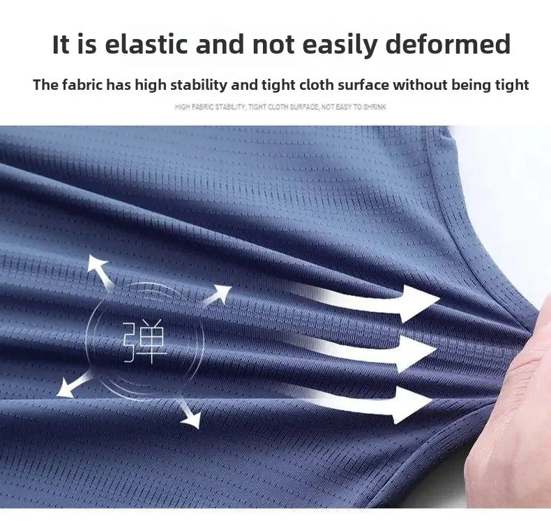 男士背心Men's Ice Silk Vest Summer Fitness Training Base Shirt Wide Shoulder Sleeveless T-shirt Quick Dry Sports Vest Comfortable Fit