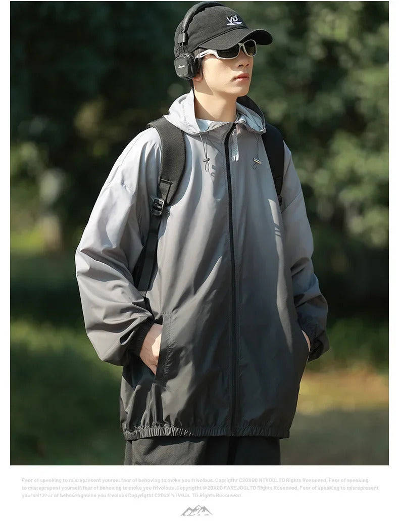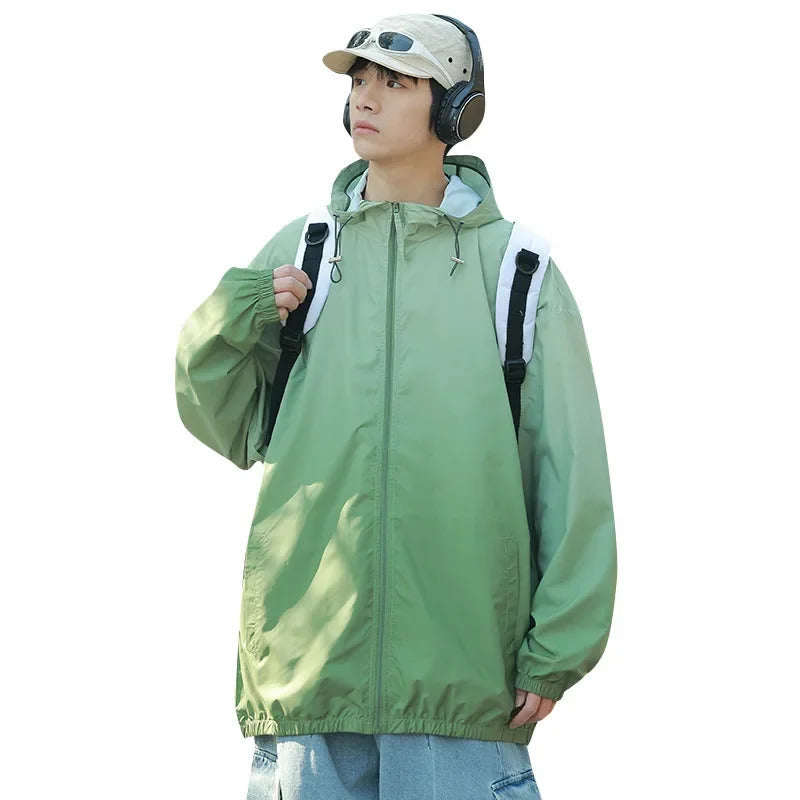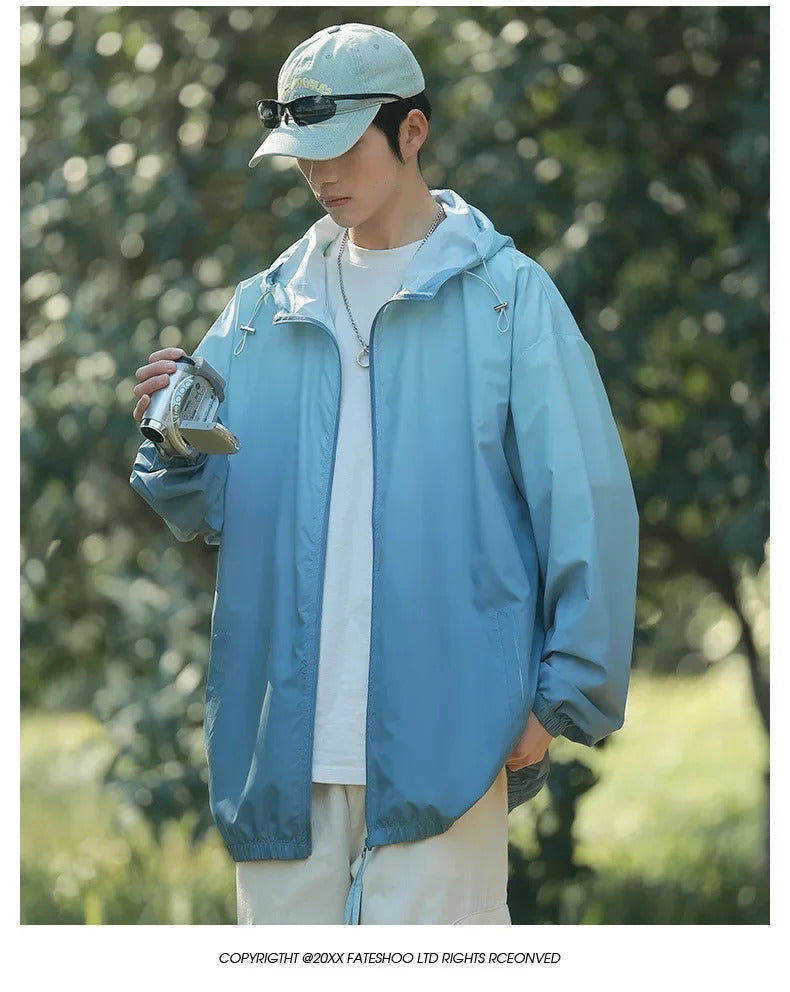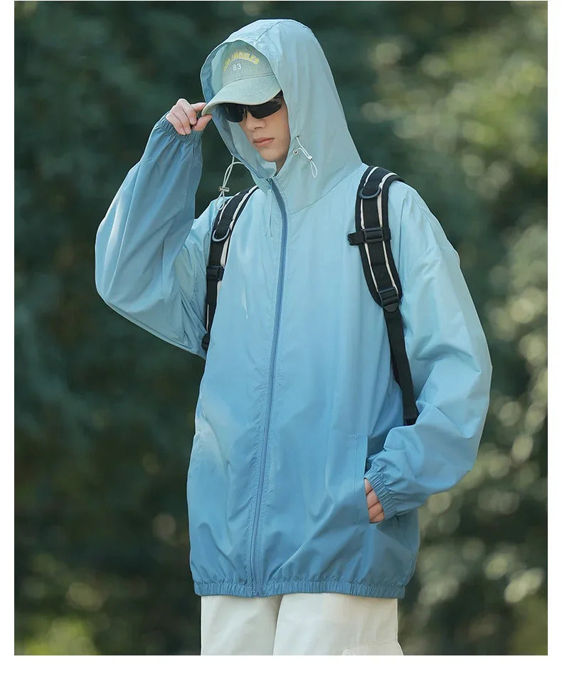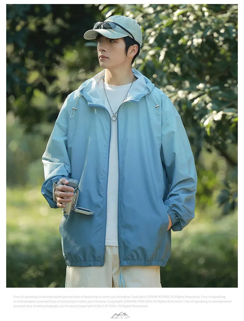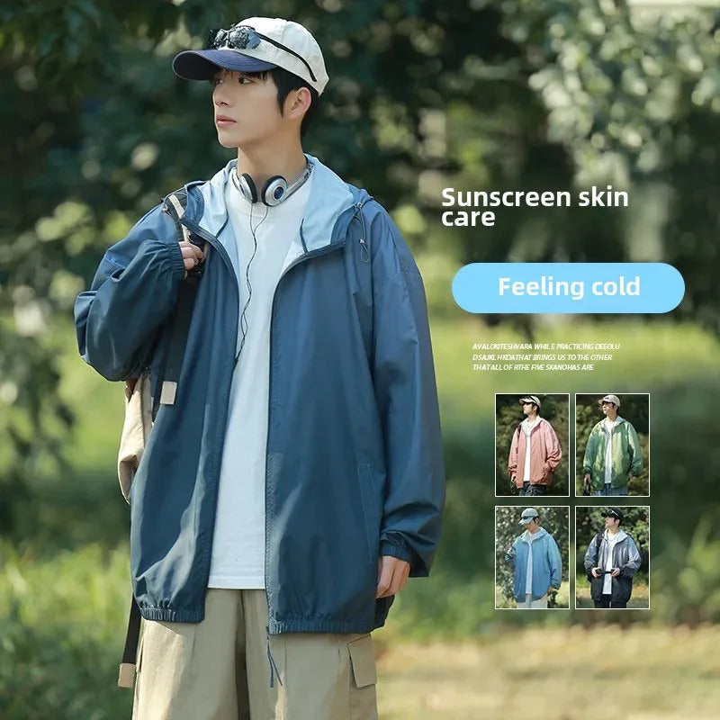 防晒衣男Men's Lightweight Ice Silk Breathable Sunscreen Clothes Loose Fit Trendy Anti-uv Hooded Sun Protection Jacket For Summer