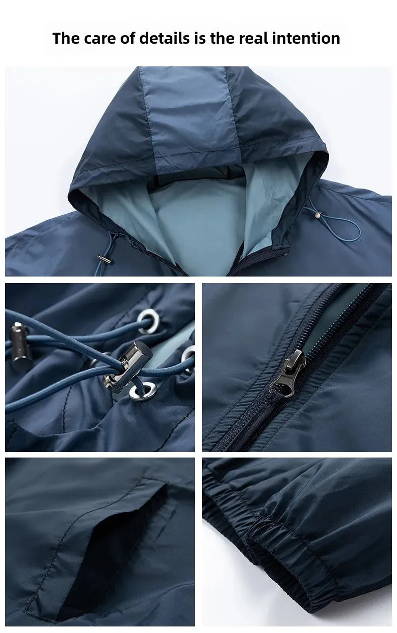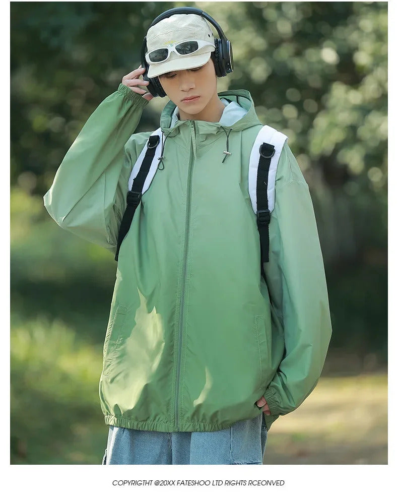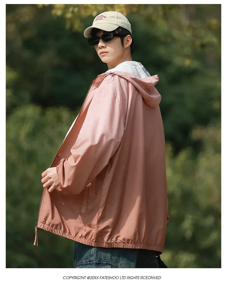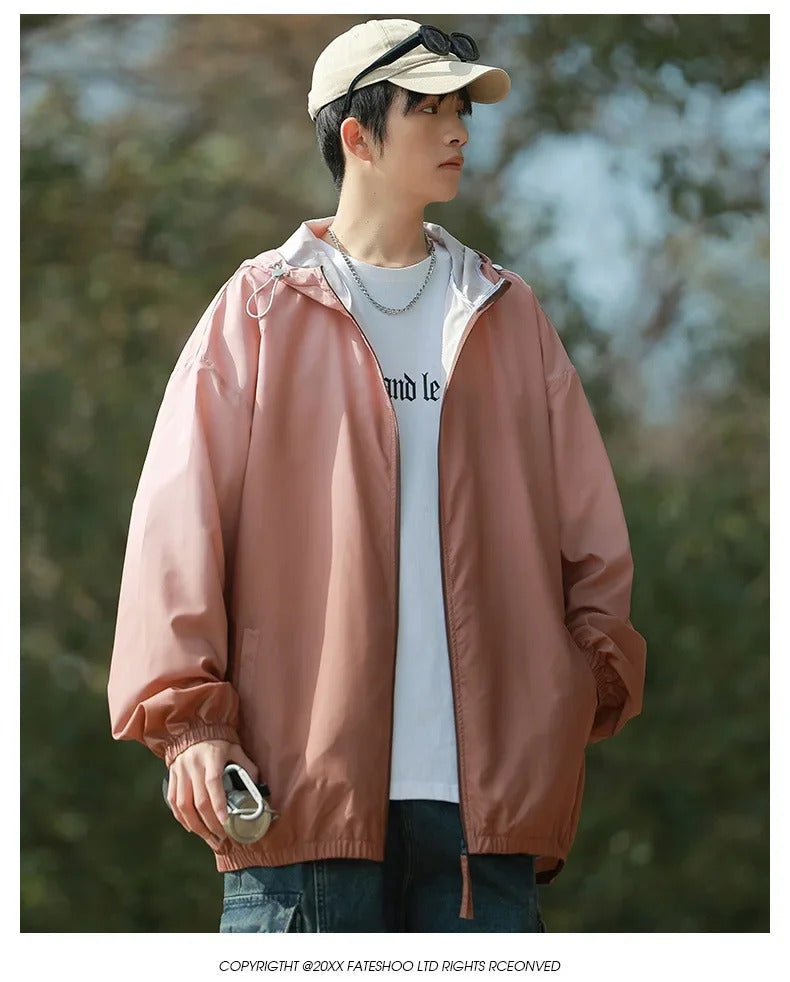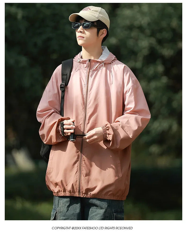 防晒衣男Men's Lightweight Ice Silk Breathable Sunscreen Clothes Loose Fit Trendy Anti-uv Hooded Sun Protection Jacket For Summer