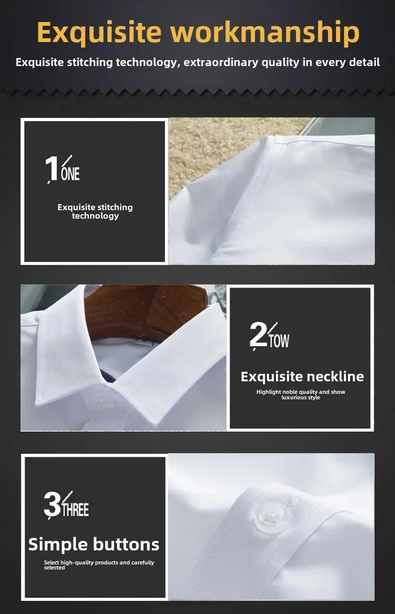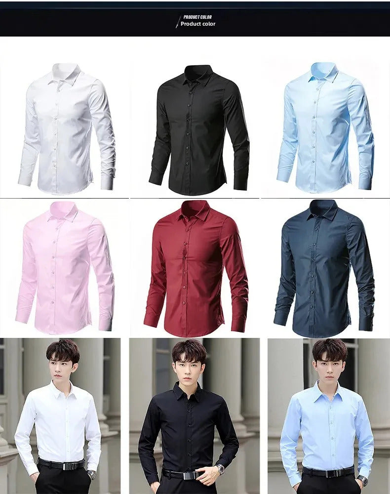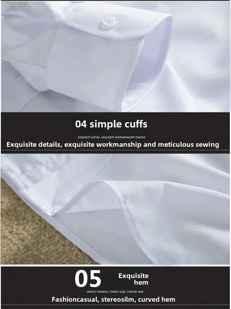 衬衫男Men's Long Sleeve White Shirt Casual Business Formal Slim Fit Korean Style Professional Work Shirt Smooths Your Silhouette