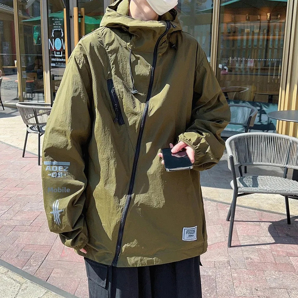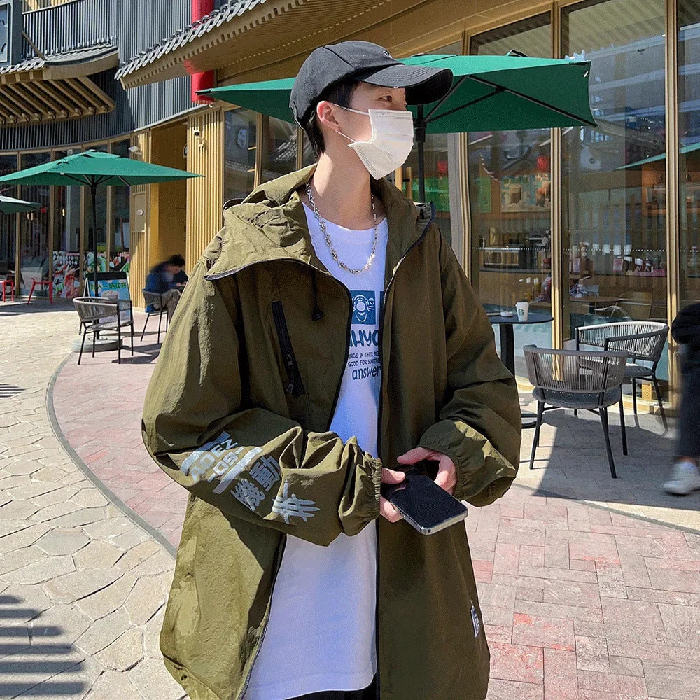 防晒衣男Men's Loose-fit Breathable Summer Sun Protection Clothes Hip Hop Lightweight Skin Top Uv Protection Function Printing Jacket
