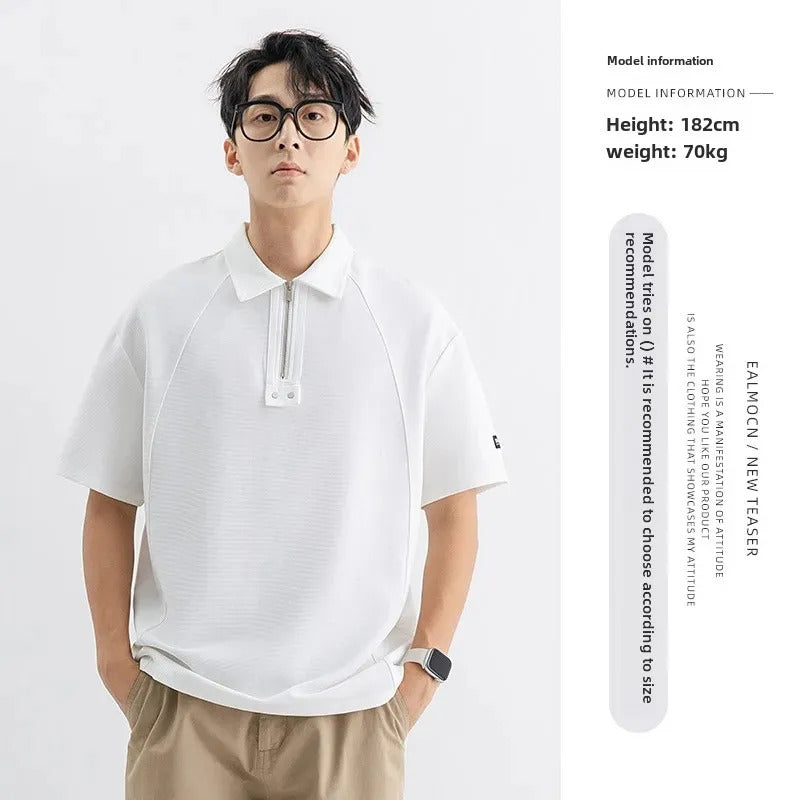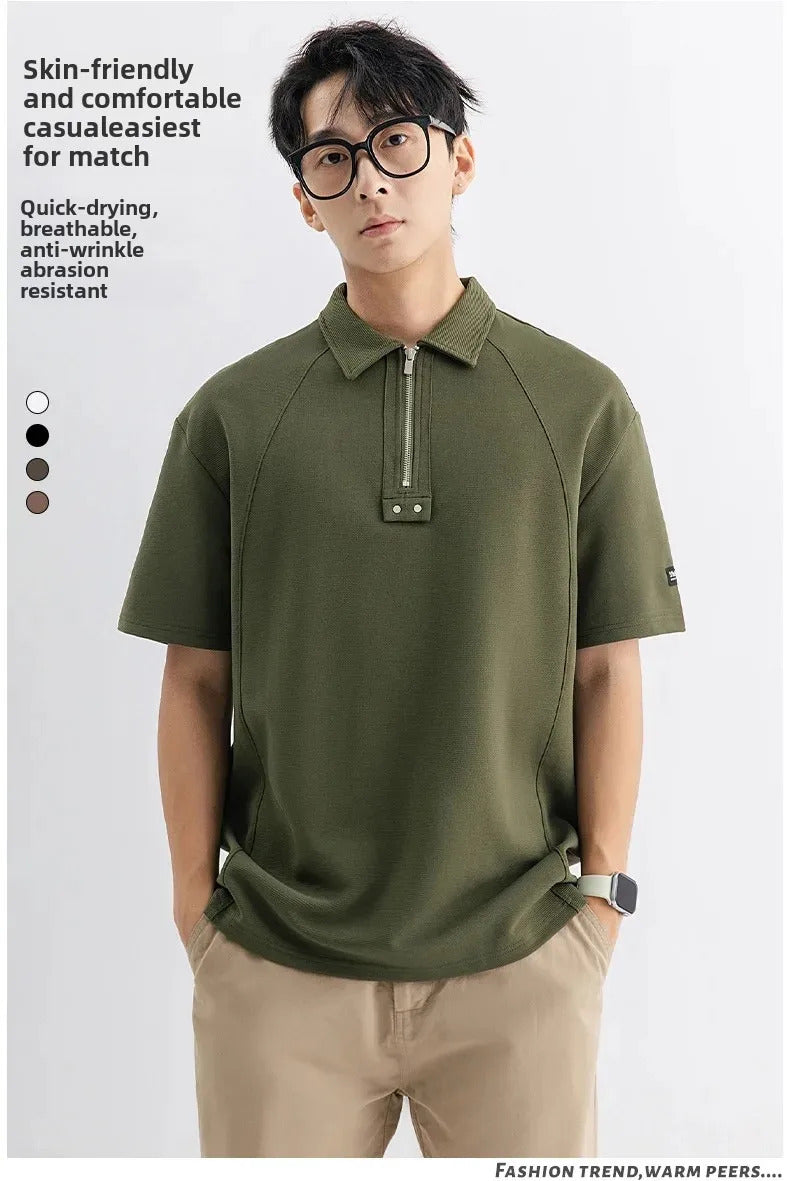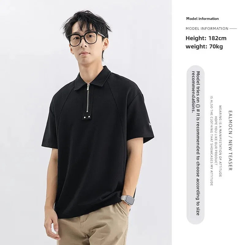 POLO男Men's Loose-Fit Polo Shirt High-End Casual Trendy Solid Color Collared Short Sleeve T-Shirt Summer Style For Men