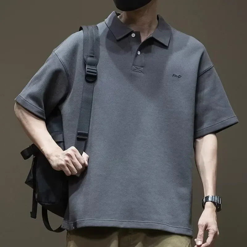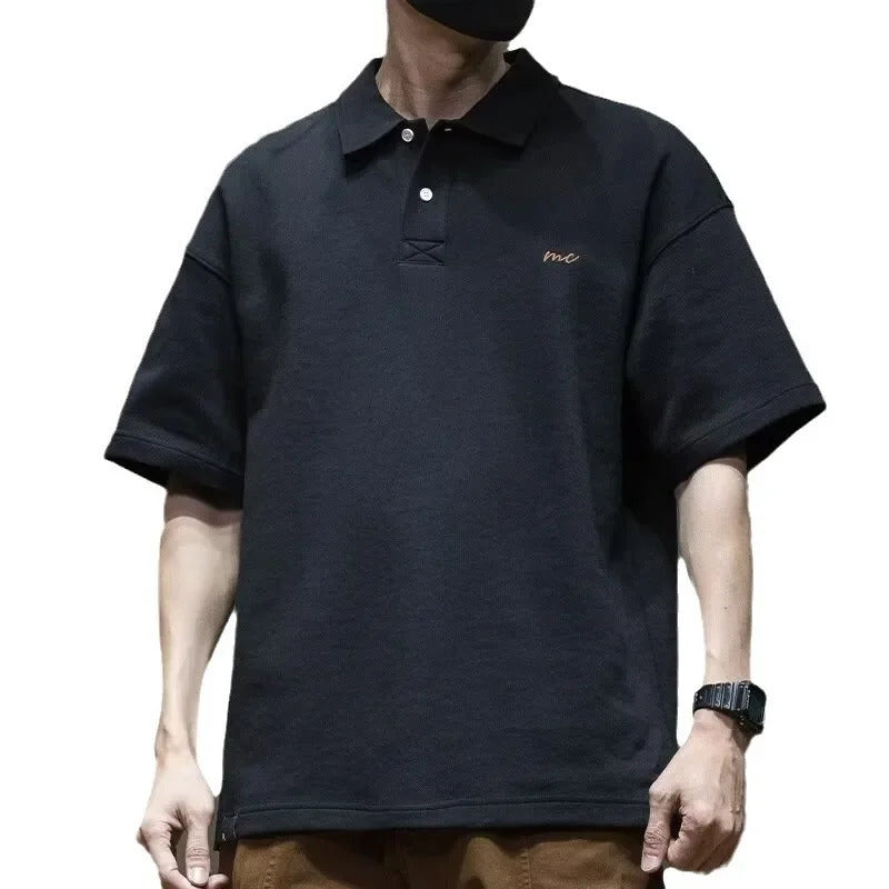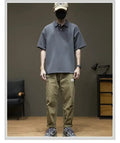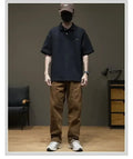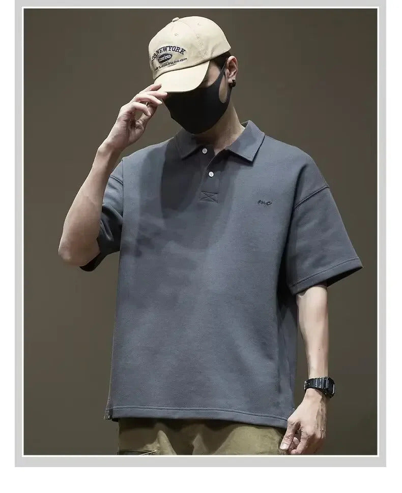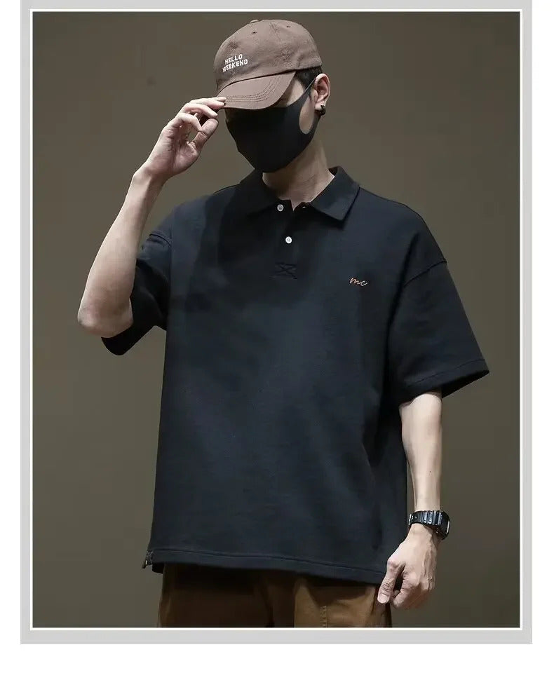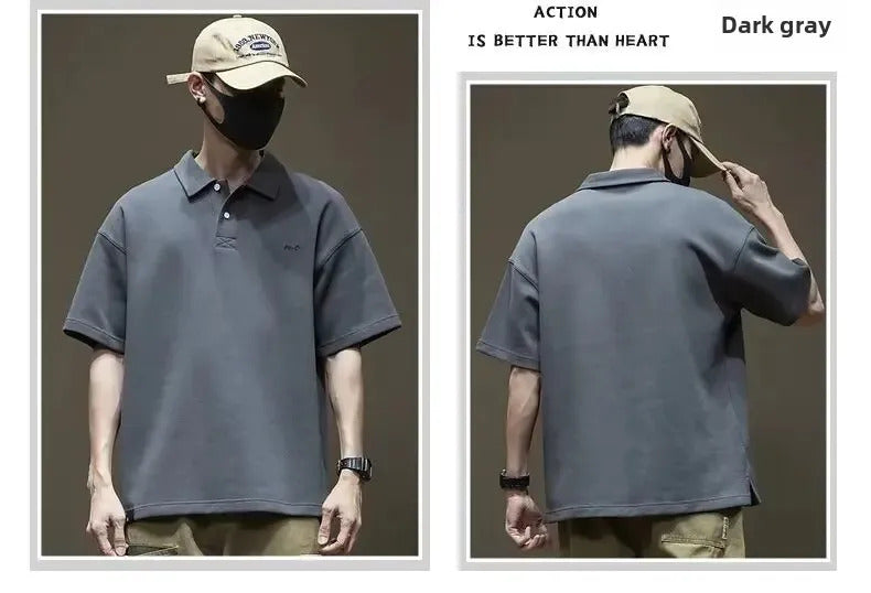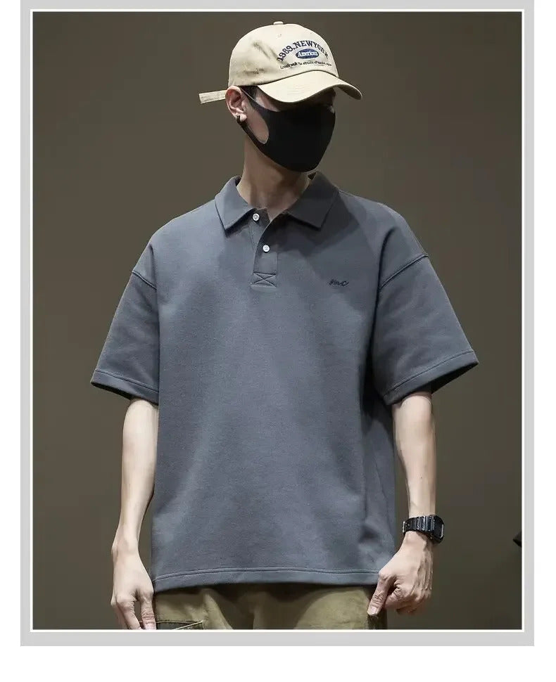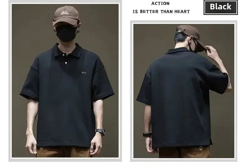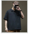 POLO男Men's Short Sleeve Summer Polo Shirt American Style Casual Business T-Shirt Top Loose Fit Solid Color Lapel Half Sleeve Tee