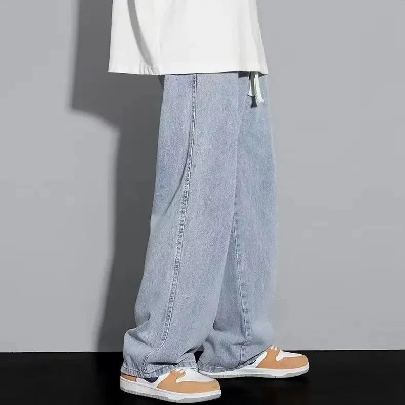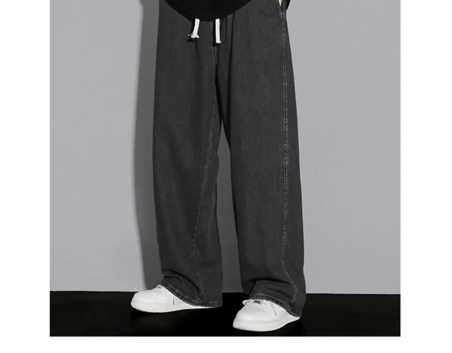 牛仔裤男Men's Straight-Leg Jeans Summer Thin Style Loose Fit Washing Casual Long Pants American Style Trendy Brand Black Bell Bottoms
