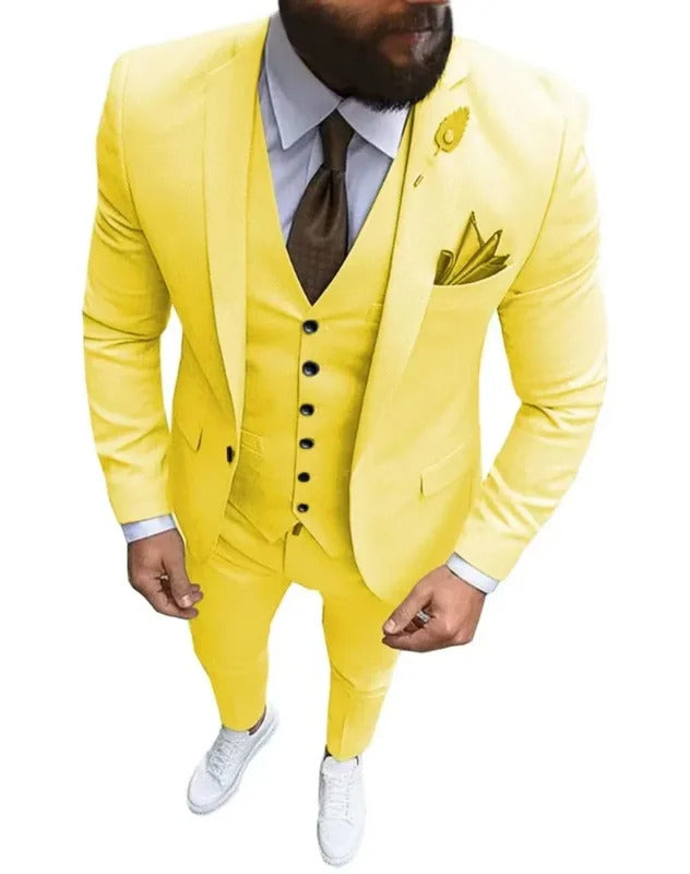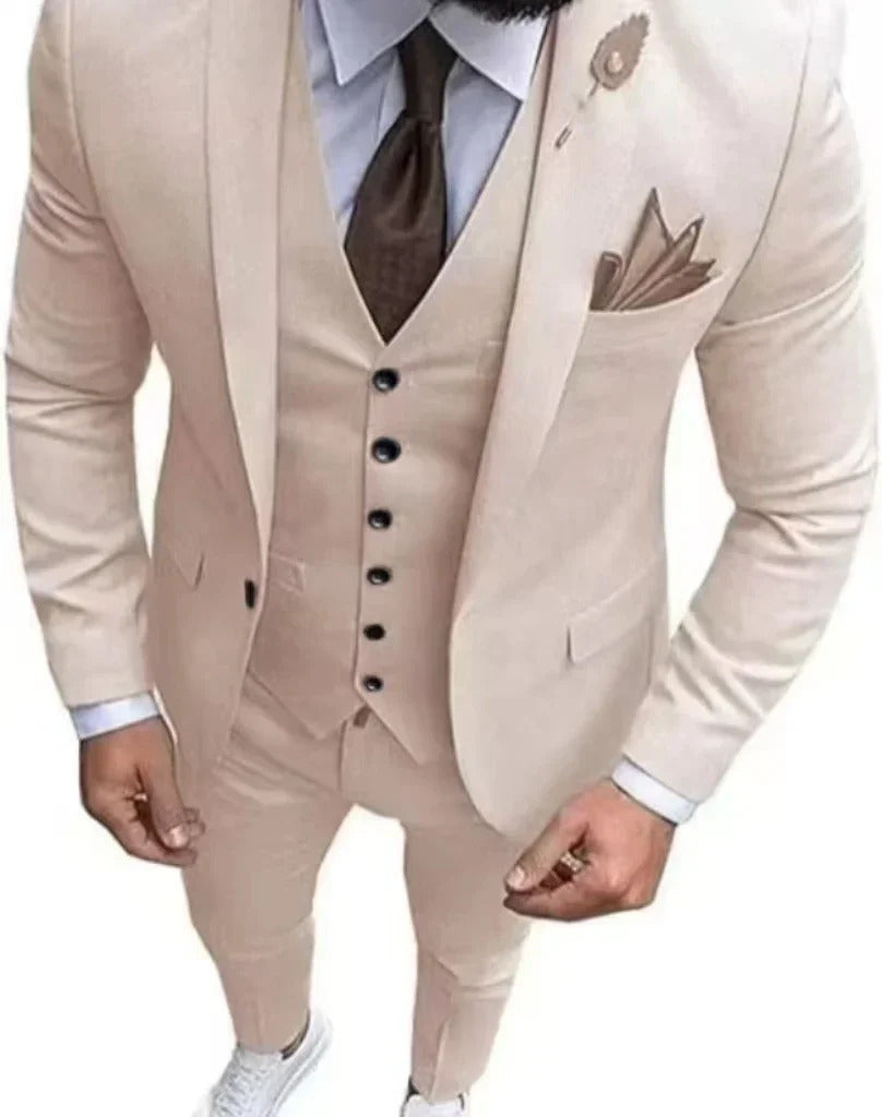 礼服男Men's Suit Slim Fit 3-Piece Set Single Button Formal Elegant Man Suit Wedding Groomsman Dance Tuxedo Jacket Pants Vest Set