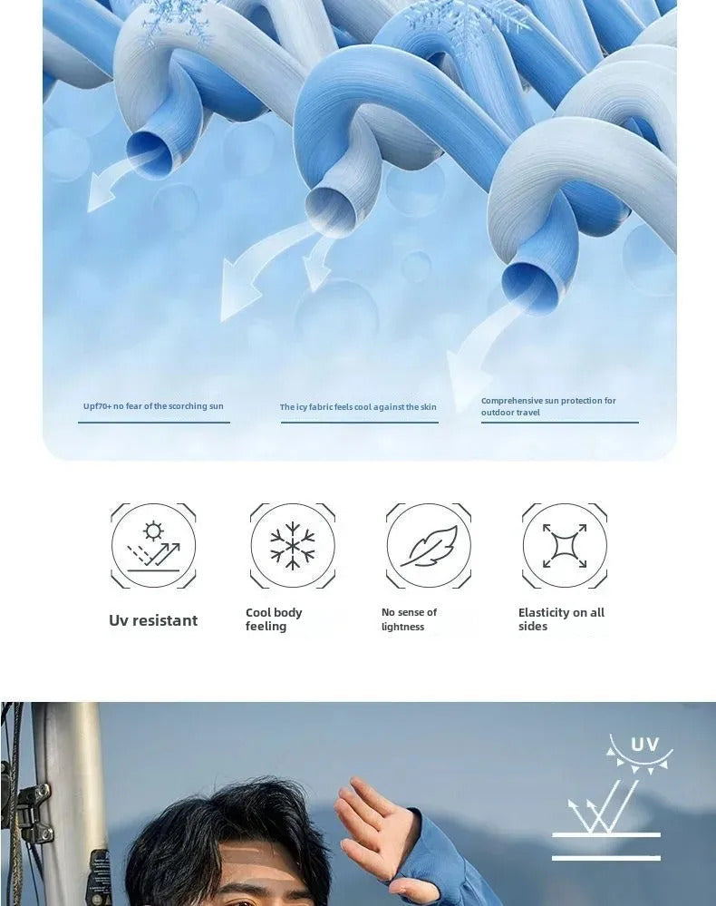 • Premium Ice Silk Material :Crafted from high-quality ice silk, this men's sunscreen offers a cool and comfortable wear, perfect for summer outings.