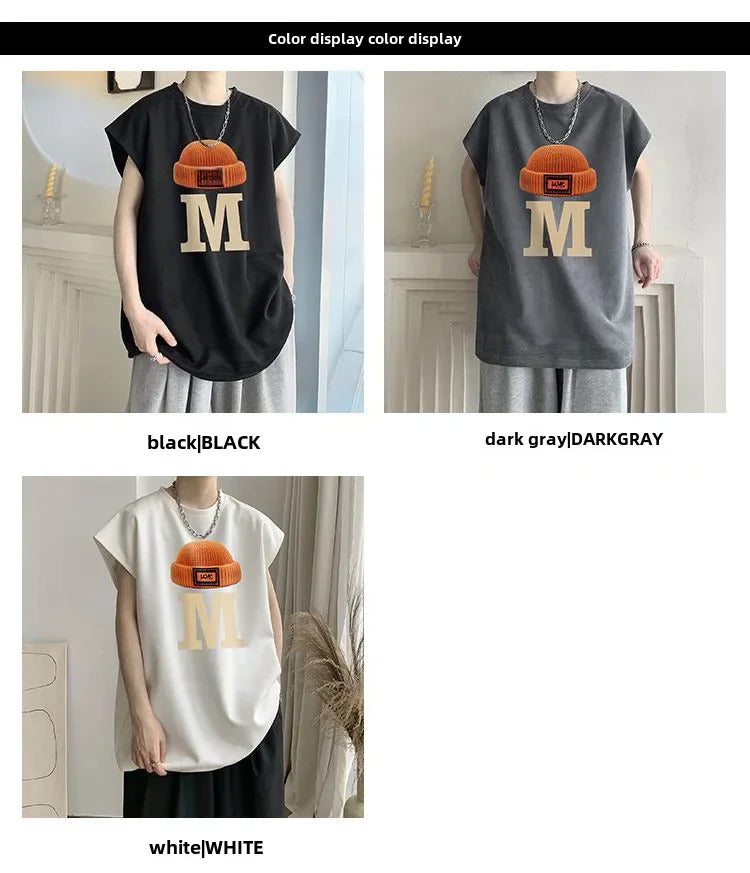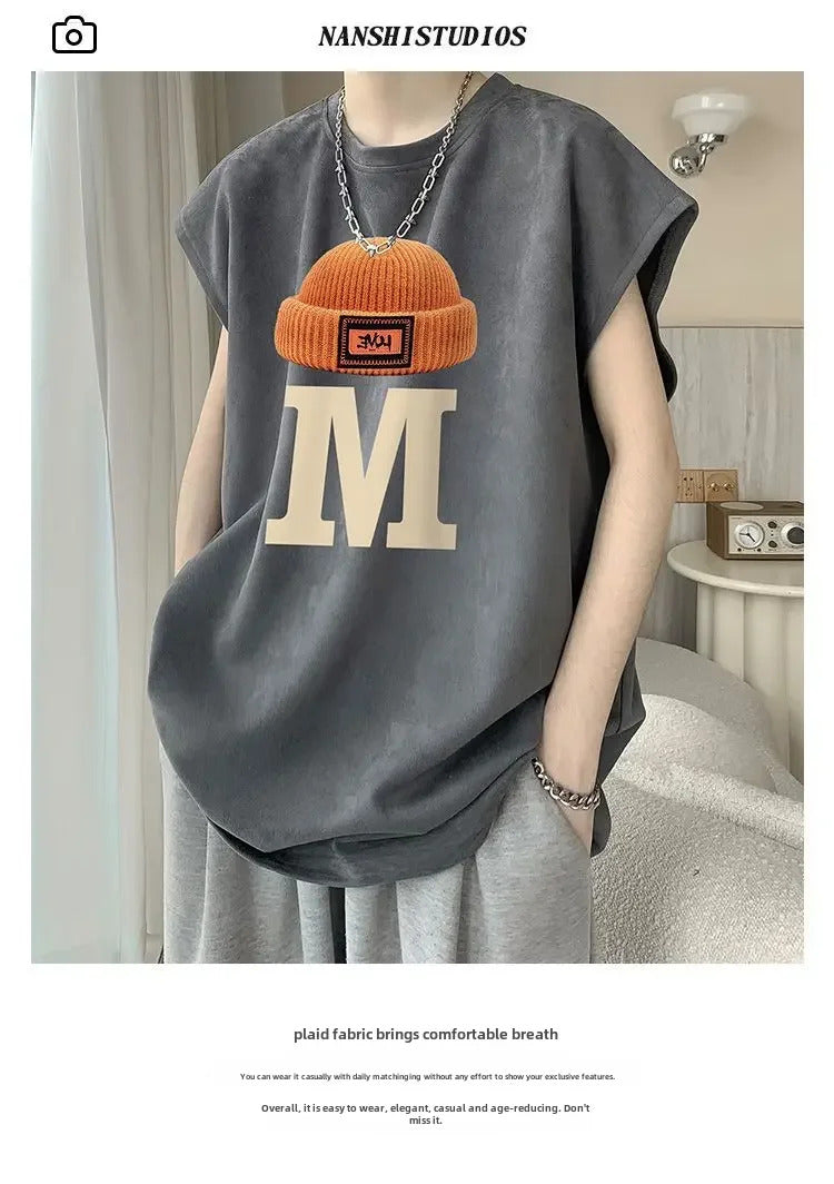 男士背心Men's Summer Loose-fit Shoulder Vest American Style Training Basketball Fitness Wide-shoulder Outer Wear Sleeveless T-shirt