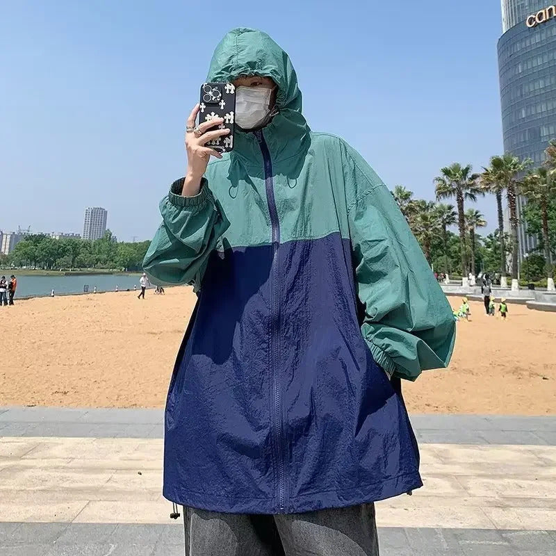 防晒衣男Men's Summer Loose-fit Sunscreen Jacket Anti-uv Casual Fashion Versatile Thin Long Sleeve Jacket Youth Trendy