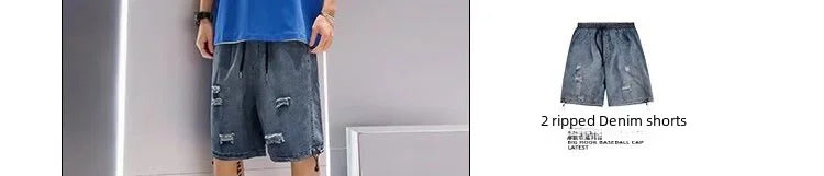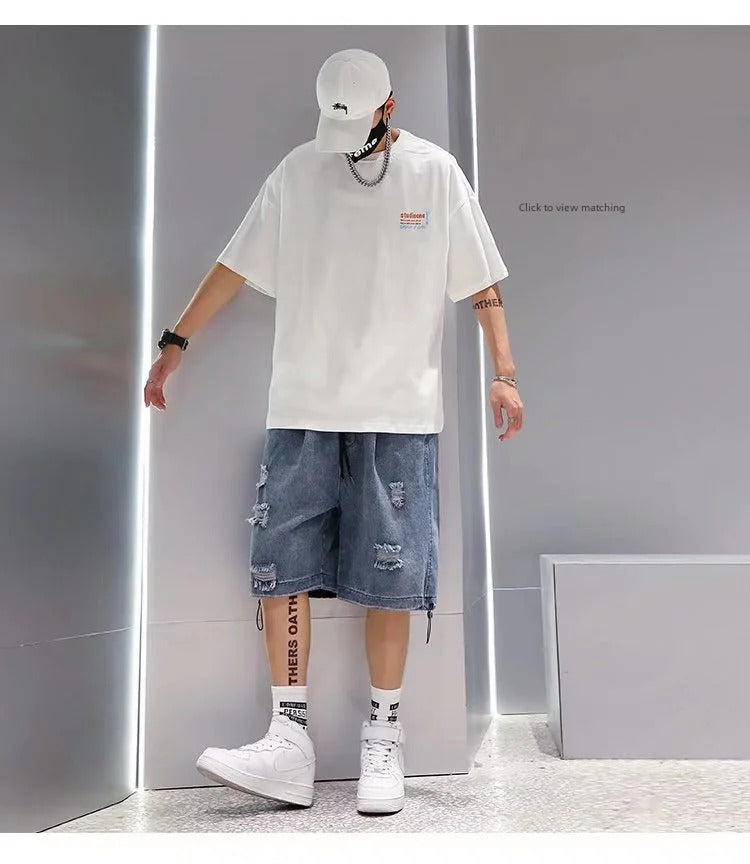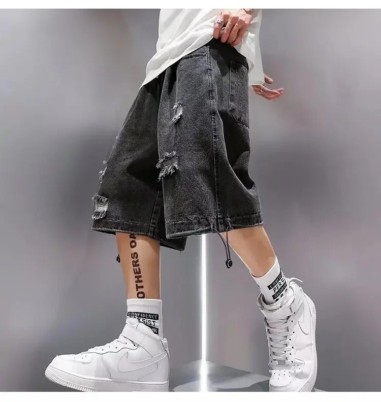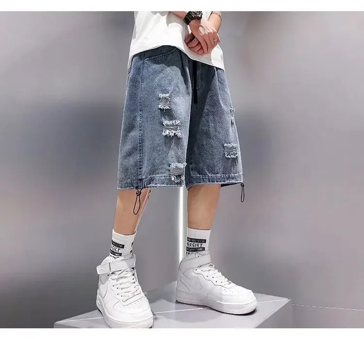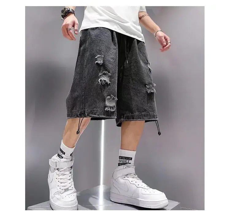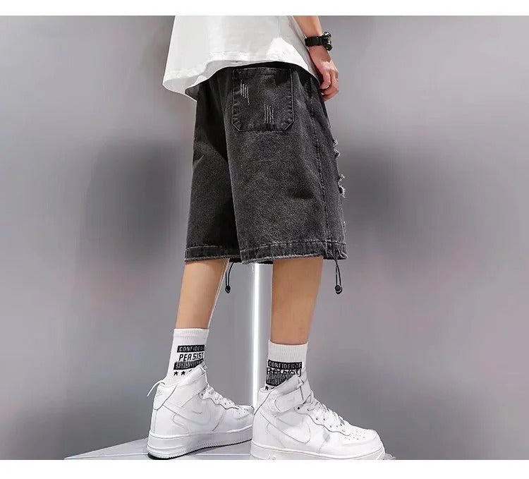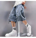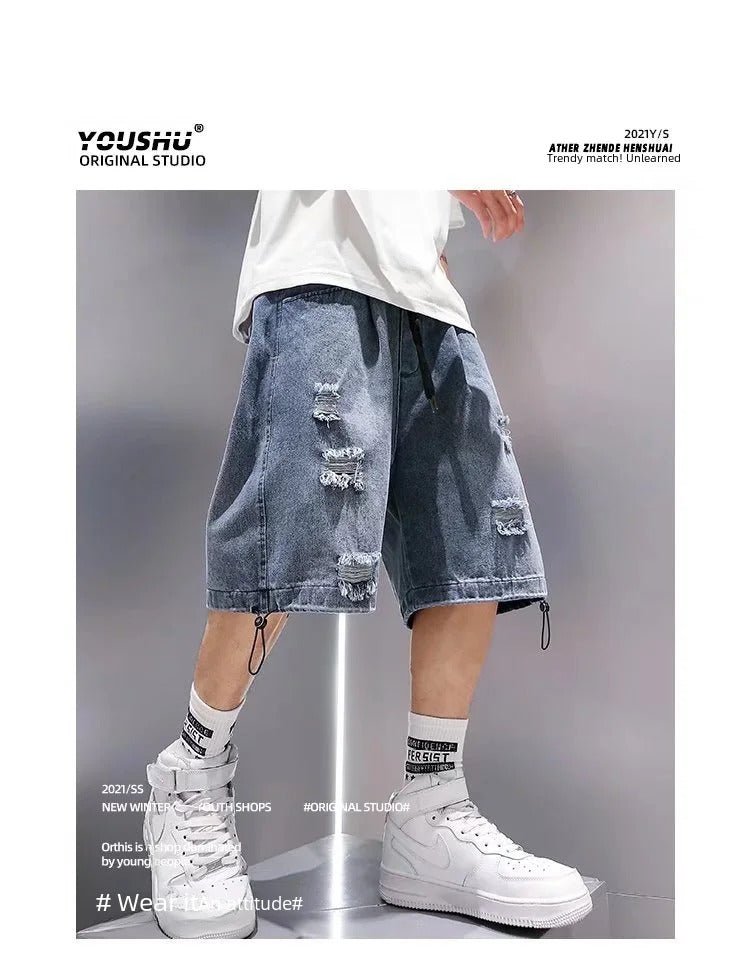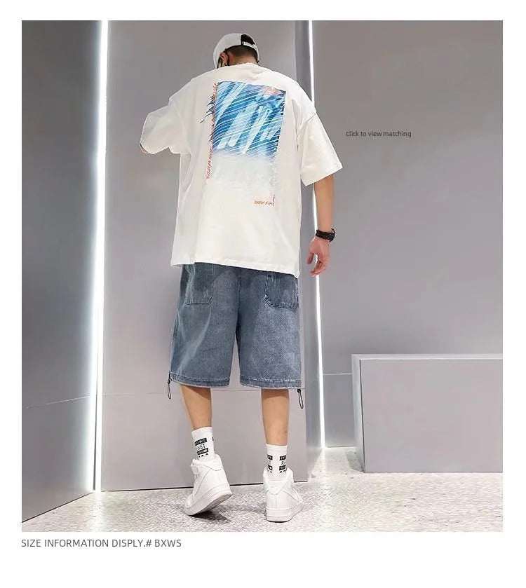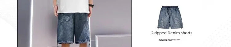 短裤男Men's Summer Loose-fit Trendy Denim Shorts American Style Five-point Mid-pants 2023 New Fashion Casual Shorts