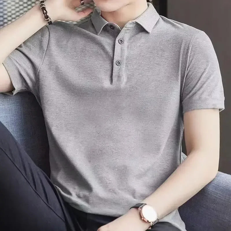 POLO男Men's Summer New Casual Polo Shirt Plus Sizes Short Sleeves Trendy Loose Fit Half Sleeve Body Top Solid Color