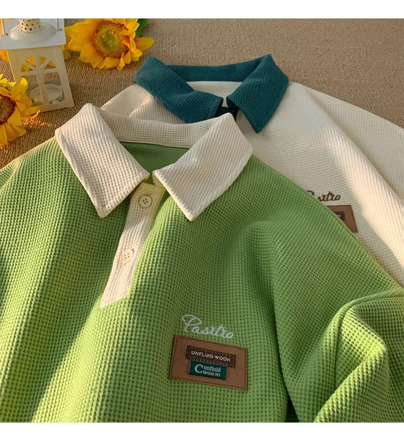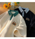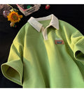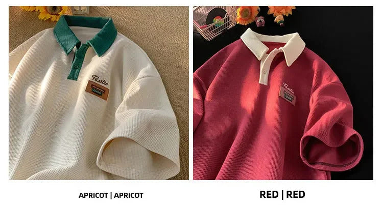 POLO男Men's Summer Style American Vintage Polo Shirt Versatile Cotton Half Sleeve T-shirt Loose Fit Casual Clothing