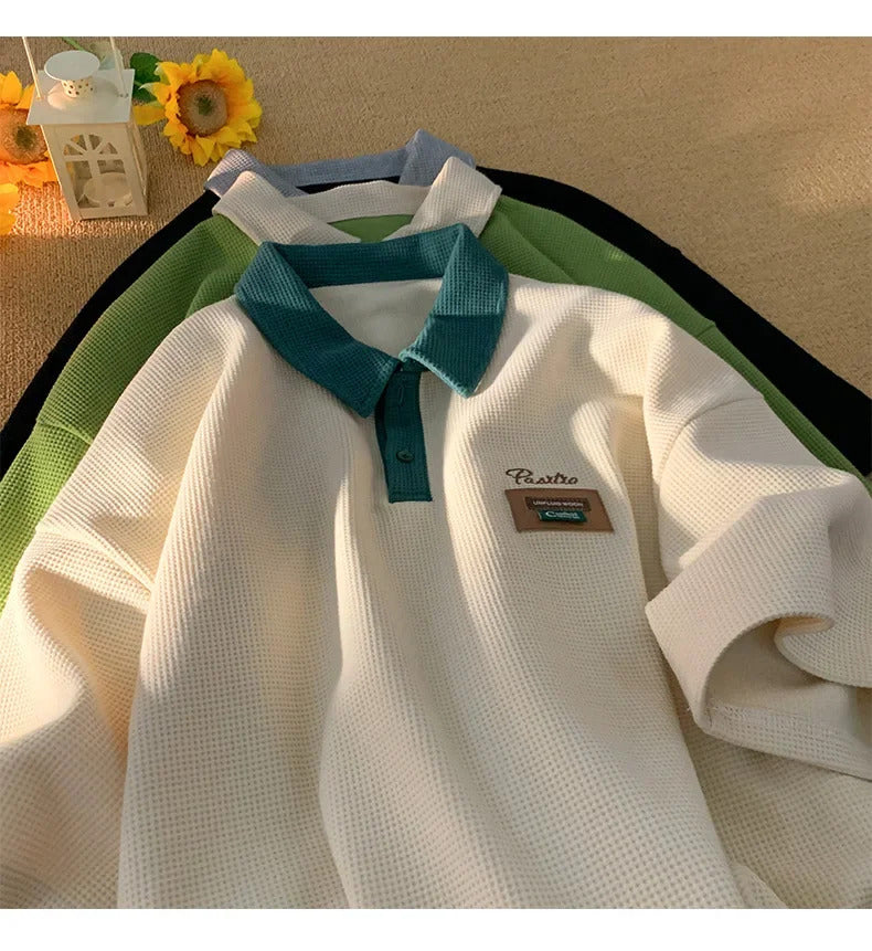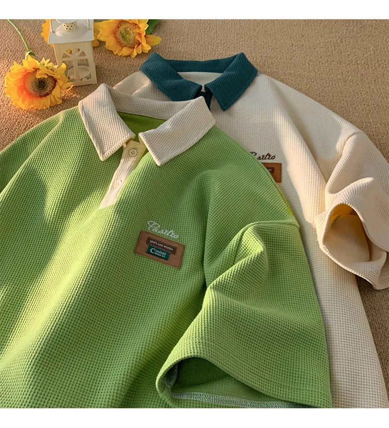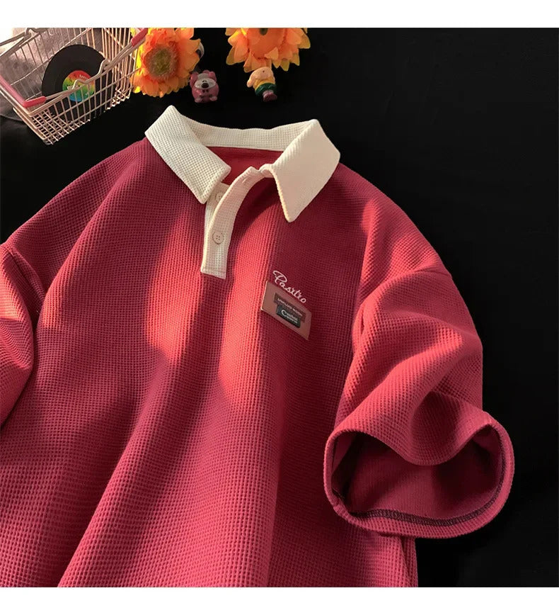 POLO男Men's Summer Style Polo Shirt Loose Fit American Vintage Trendy Brand Casual Heavy Cotton Half Sleeve Body Shirt Clothing