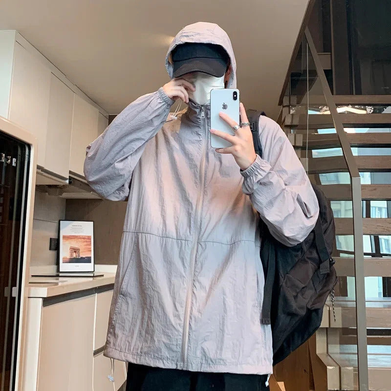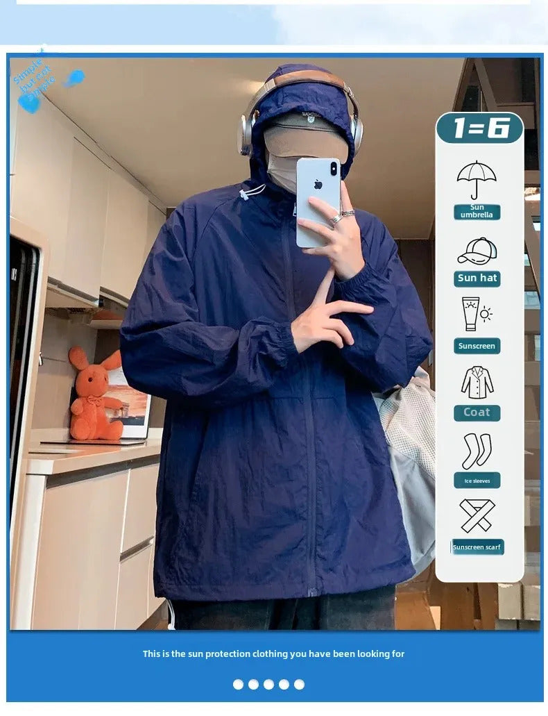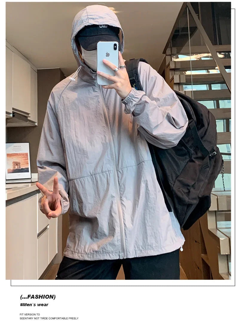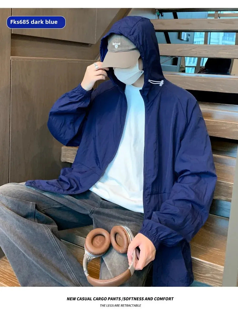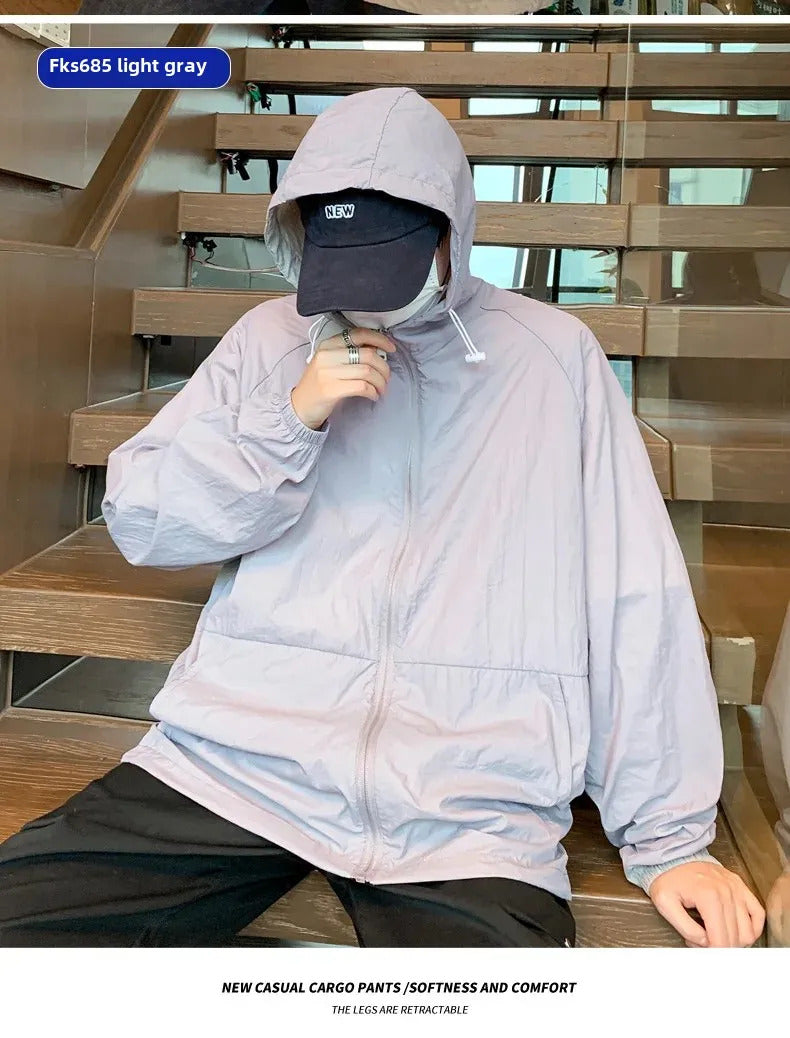 防晒衣男Men's Ultra-thin Breathable Sun-protective Skin Coat For Outdoor Activities Trendy Sunscreen Jacket
