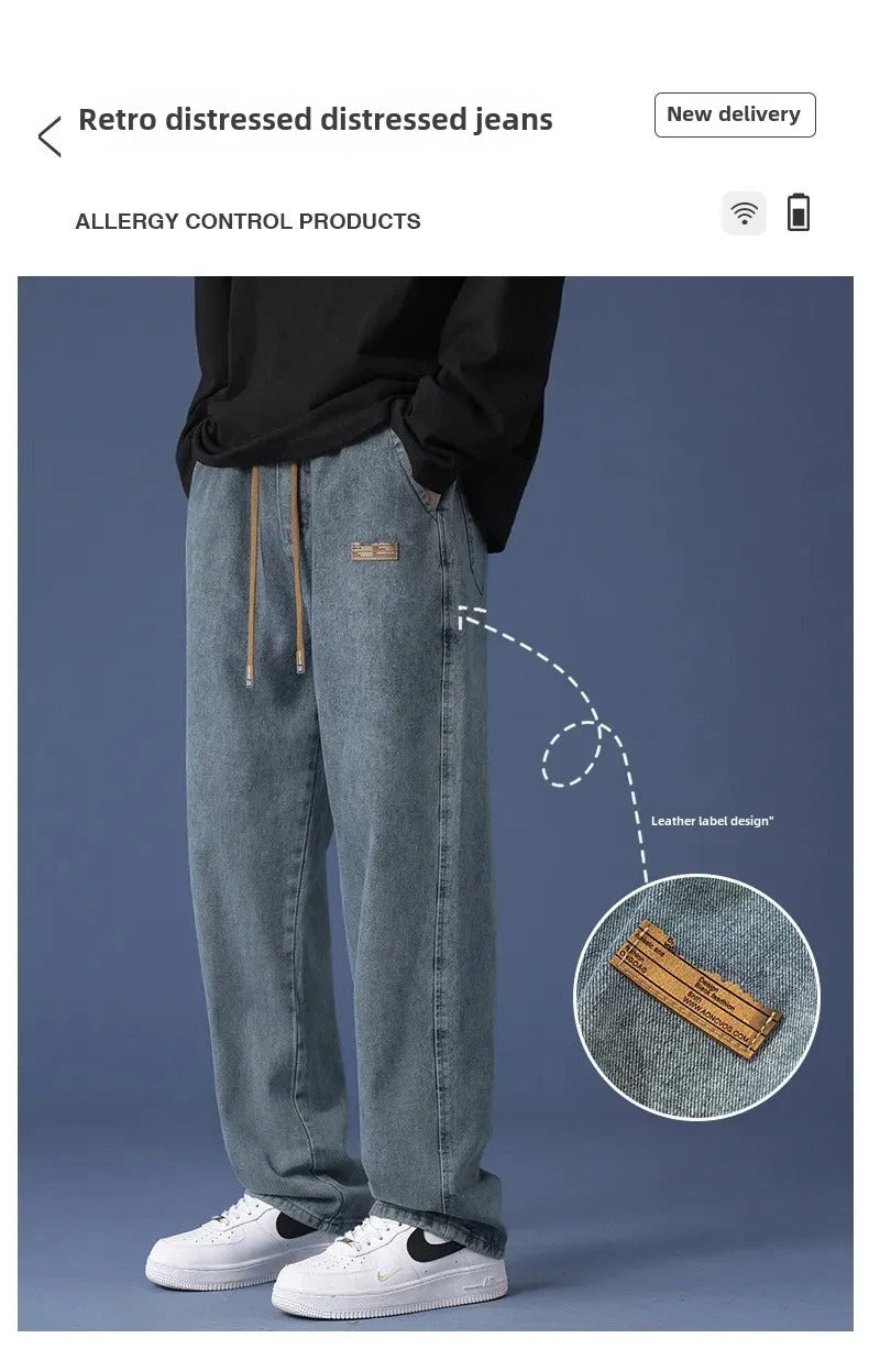 牛仔裤男Men's Vintage Straight-Leg Jeans Casual Trousers Loose-Fit Spring Autumn High Street Style American Culture