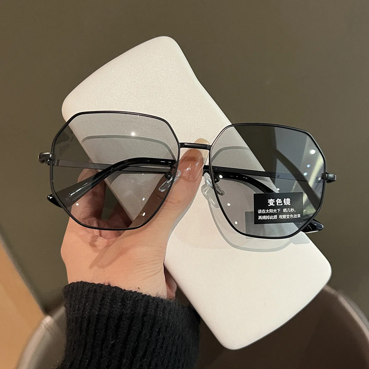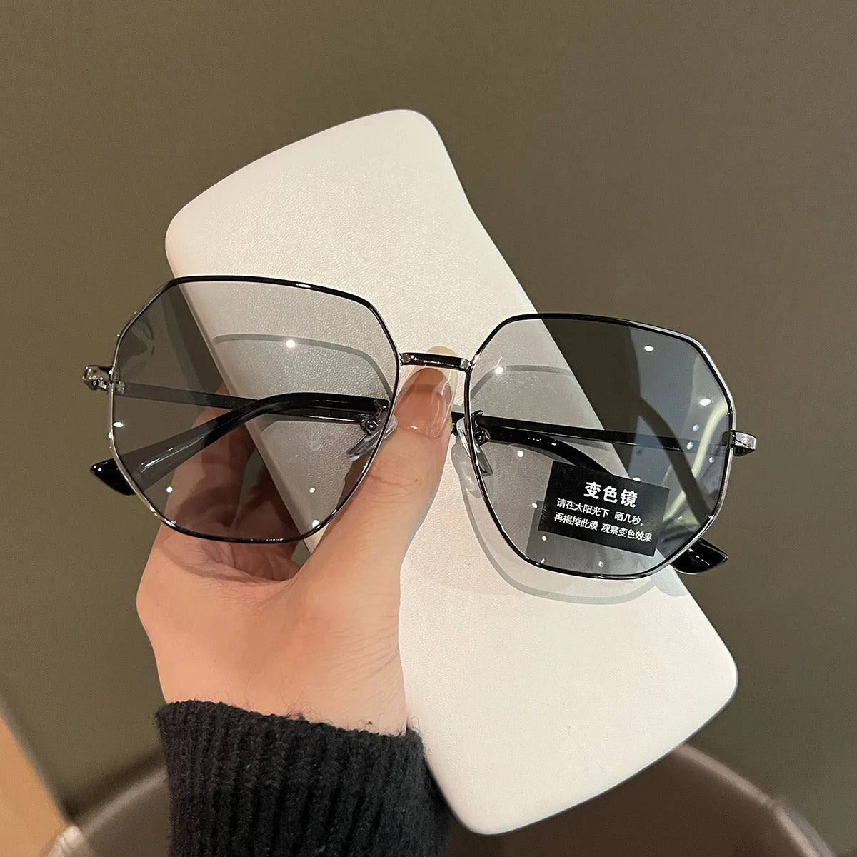 太阳镜男Metal Large Frame Square Sunglasses Women's Photochromic Fashion Sun Glasses Men's Polarized Driving Eyewear UV400 Oculos De Sol