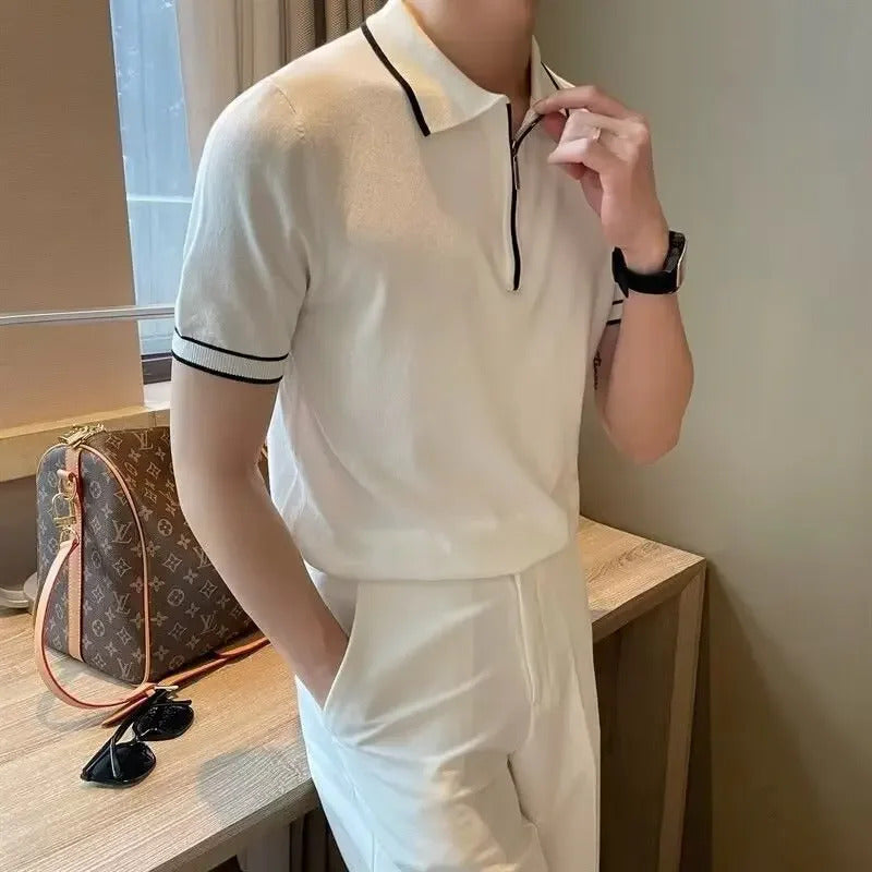 POLO男New 2024 Men's Summer Breathable Anti-Wrinkle Dry Business Casual Lapel Short Sleeve T-Shirt POLO Shirt