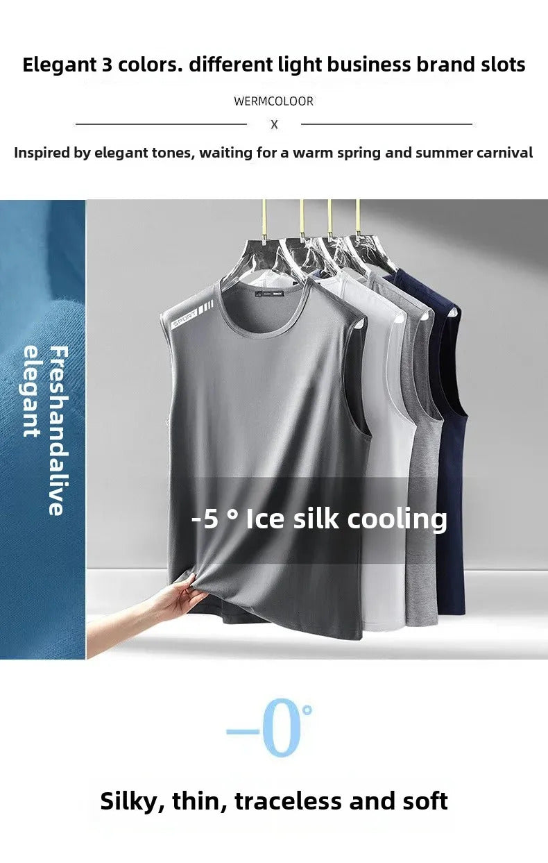 男士背心New Quick Dry Sports Vest Men Loose Summer Ice Silk Sleeveless T-Shirt Fitness Training Running Basketball American Style Should